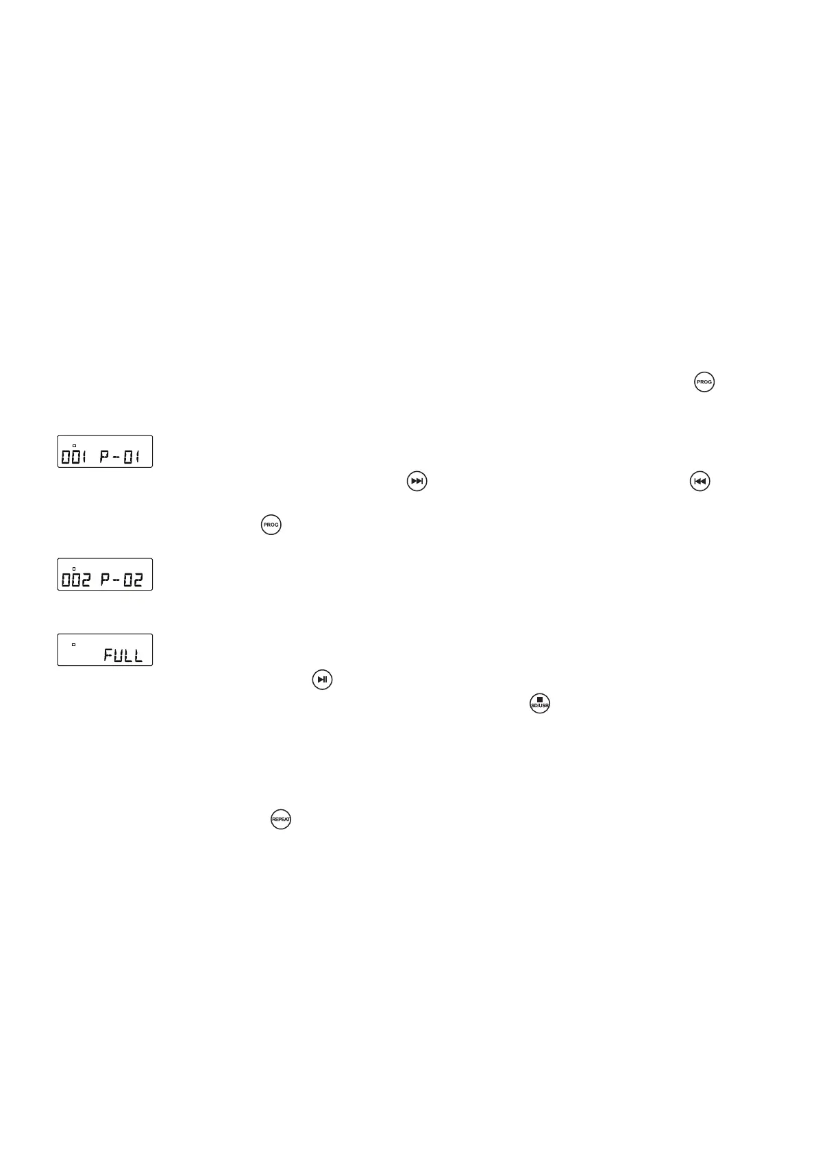 L’écran va afcher “FULL“ [PLEIN] au cas où vous tentez de programmer plus de 20 pistes.