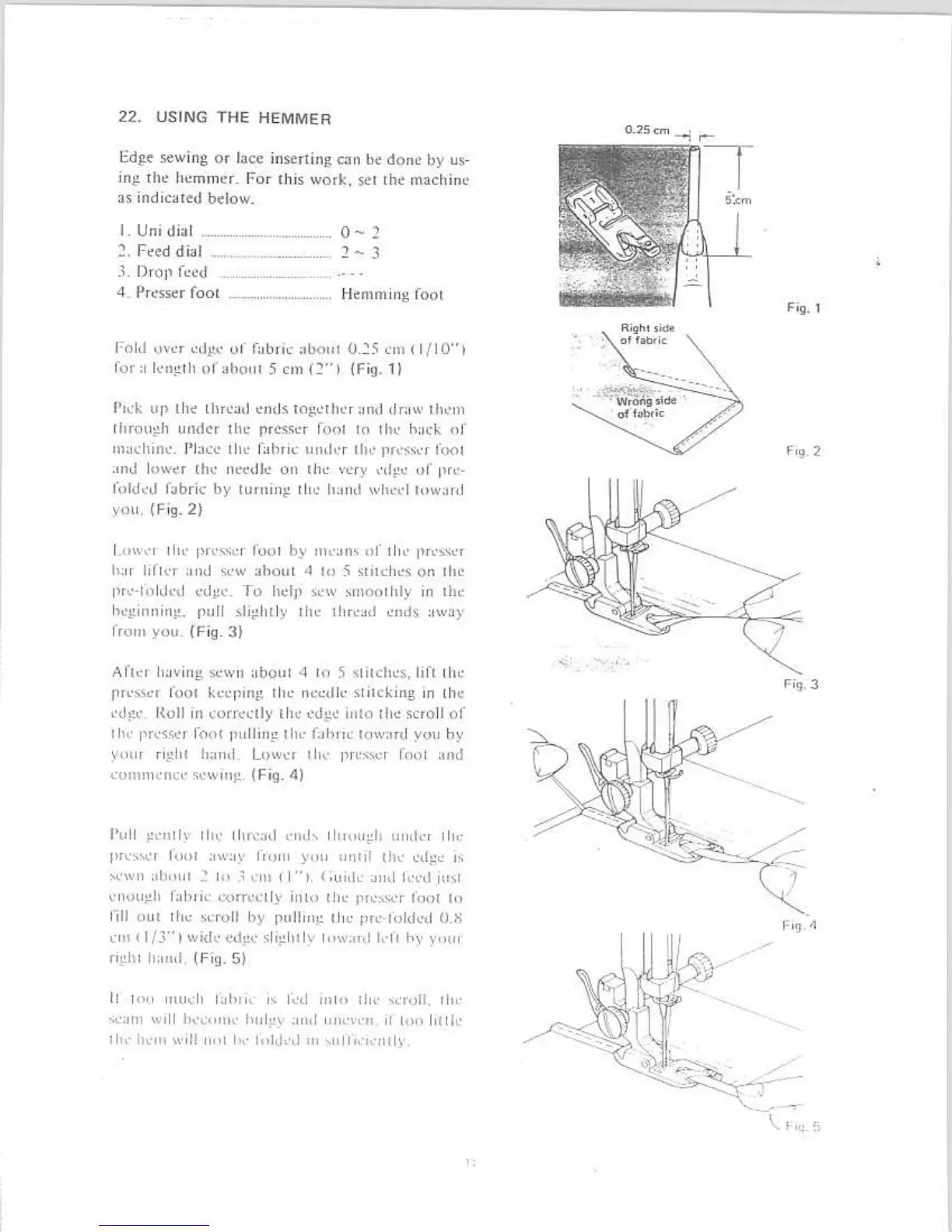 Riccar 404 - Using the Hemmer