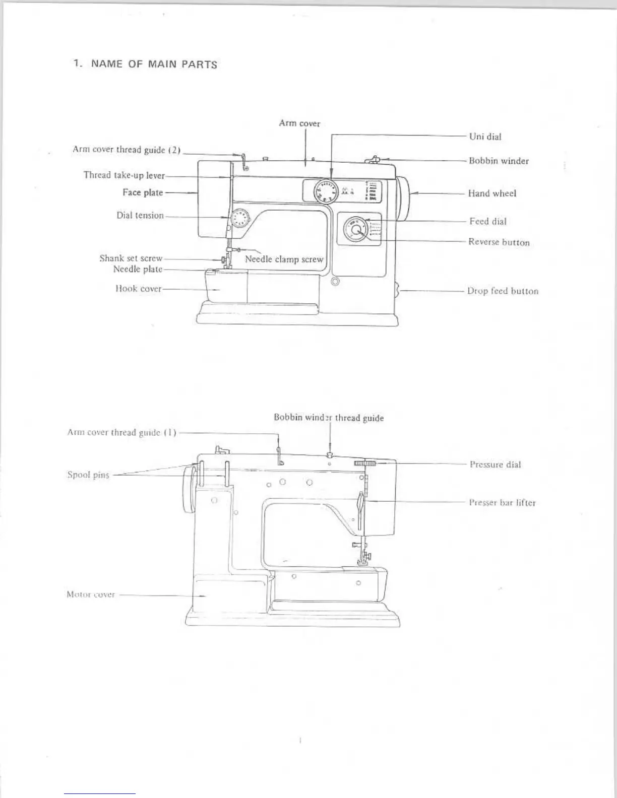 Riccar 404 - Name of Main Parts