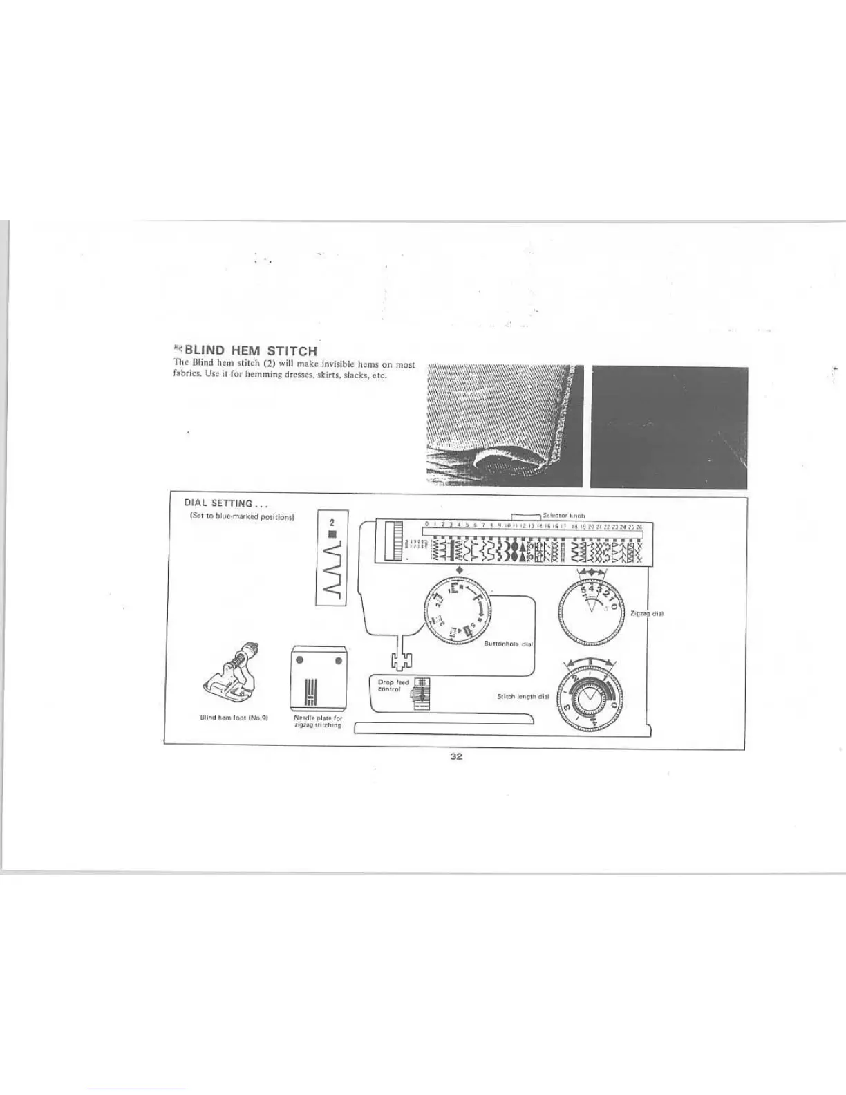 Riccar 808E - Blind Hem Stitch Guide; Blind Hem Dial Settings