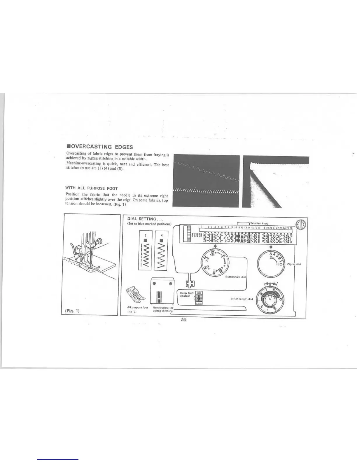 Riccar 808E - Overcasting Edges Guide; Overcasting with All-Purpose Foot; Overcasting Dial Settings