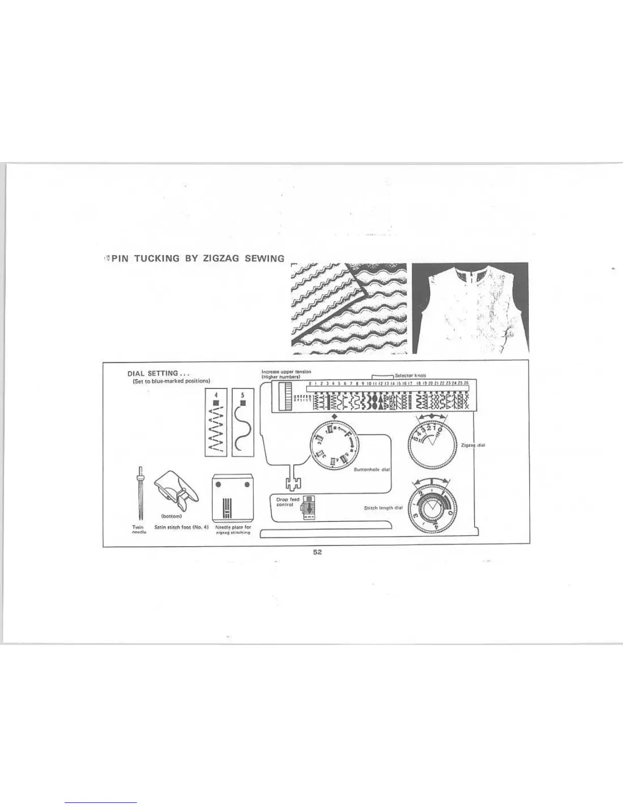 Riccar 808E - Pin Tucking Tips; Twin Needle Zigzag Dial Note; Varying Stitch Length;Width; Pin Tucking Combinations