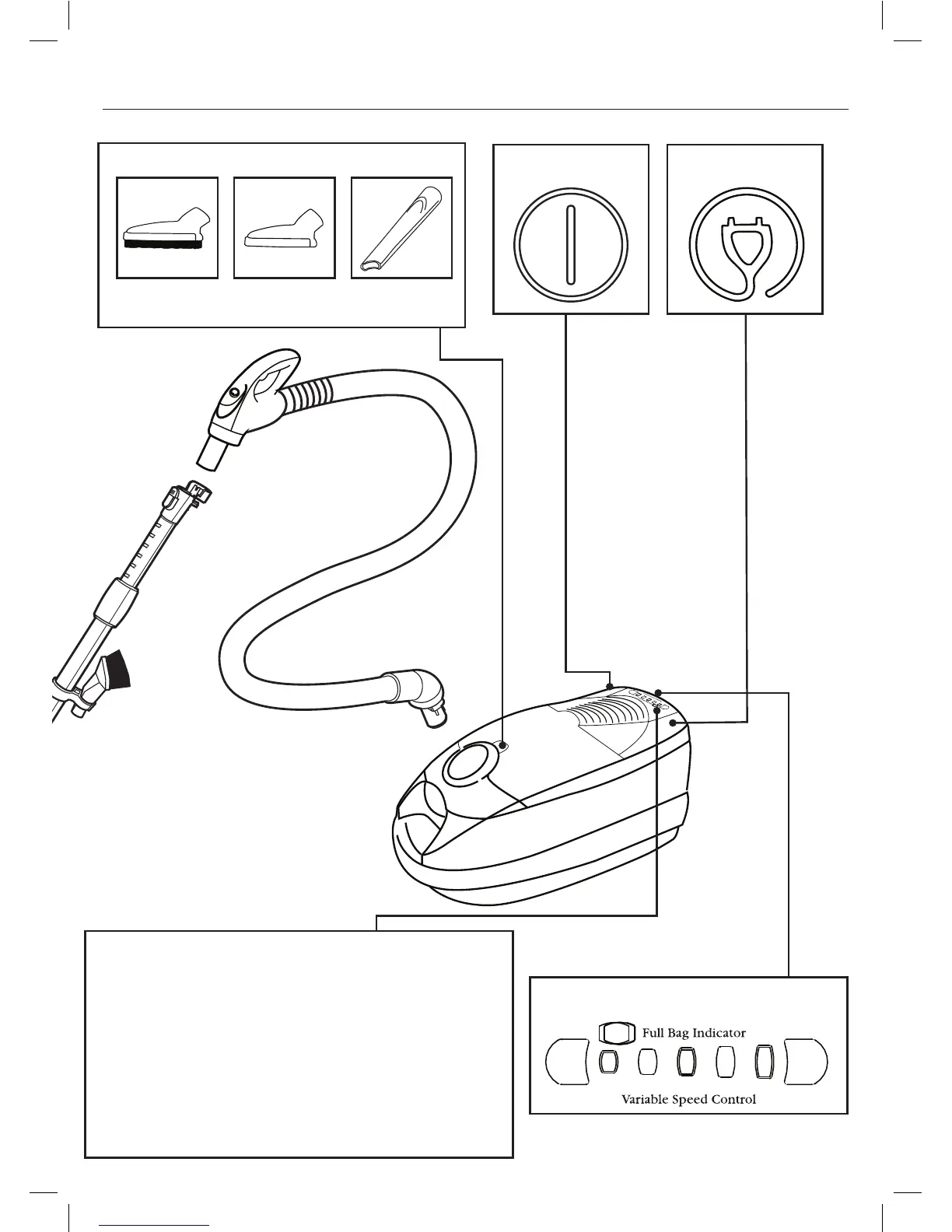 tool or crevice tool), the flashing red indicator light