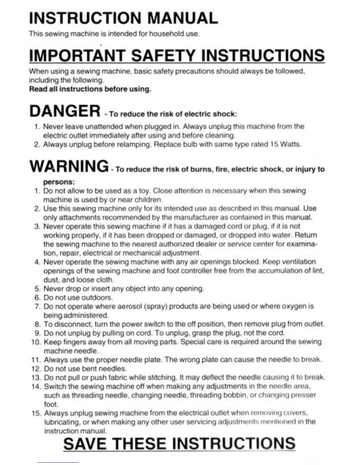 Riccar REC6000 - IMPORTANT SAFETY INSTRUCTIONS; Electrical Shock Precautions; General Safety Warnings