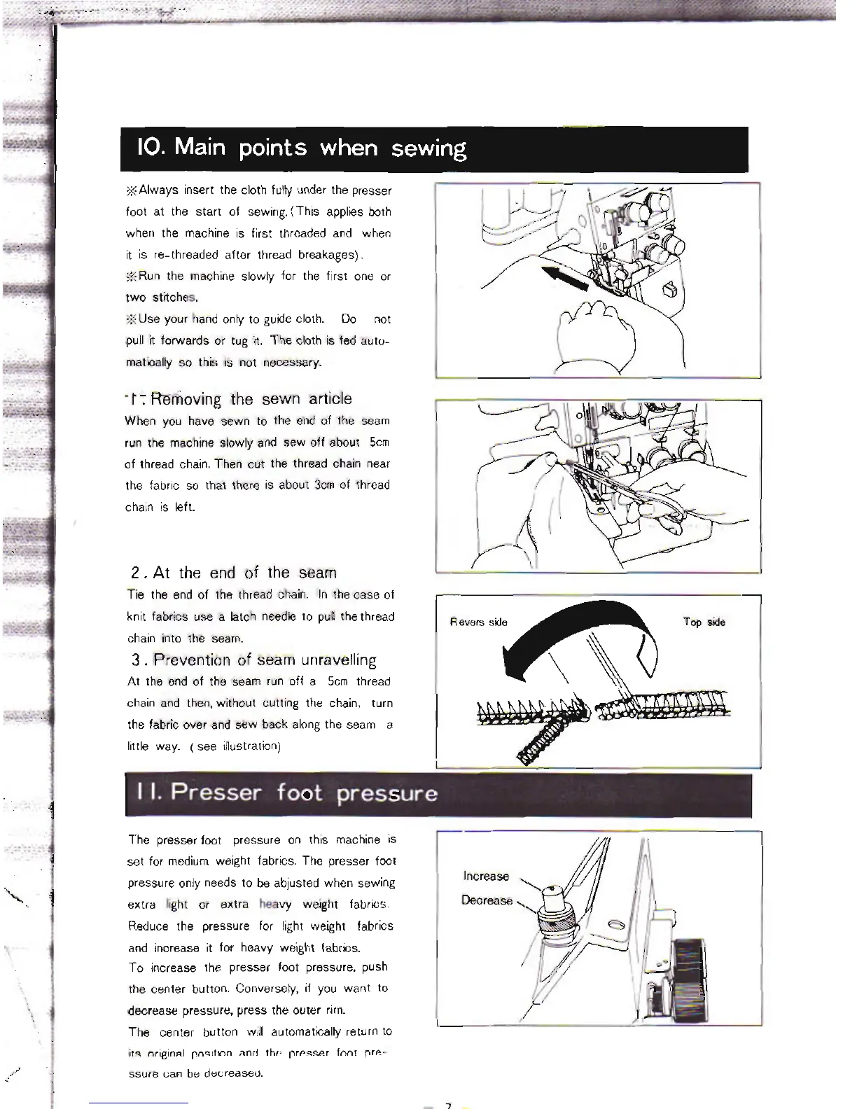 Riccar RL-340 - Key Sewing Techniques; Removing Finished Seams; Securing Seams at End; Preventing Seam Unravelling