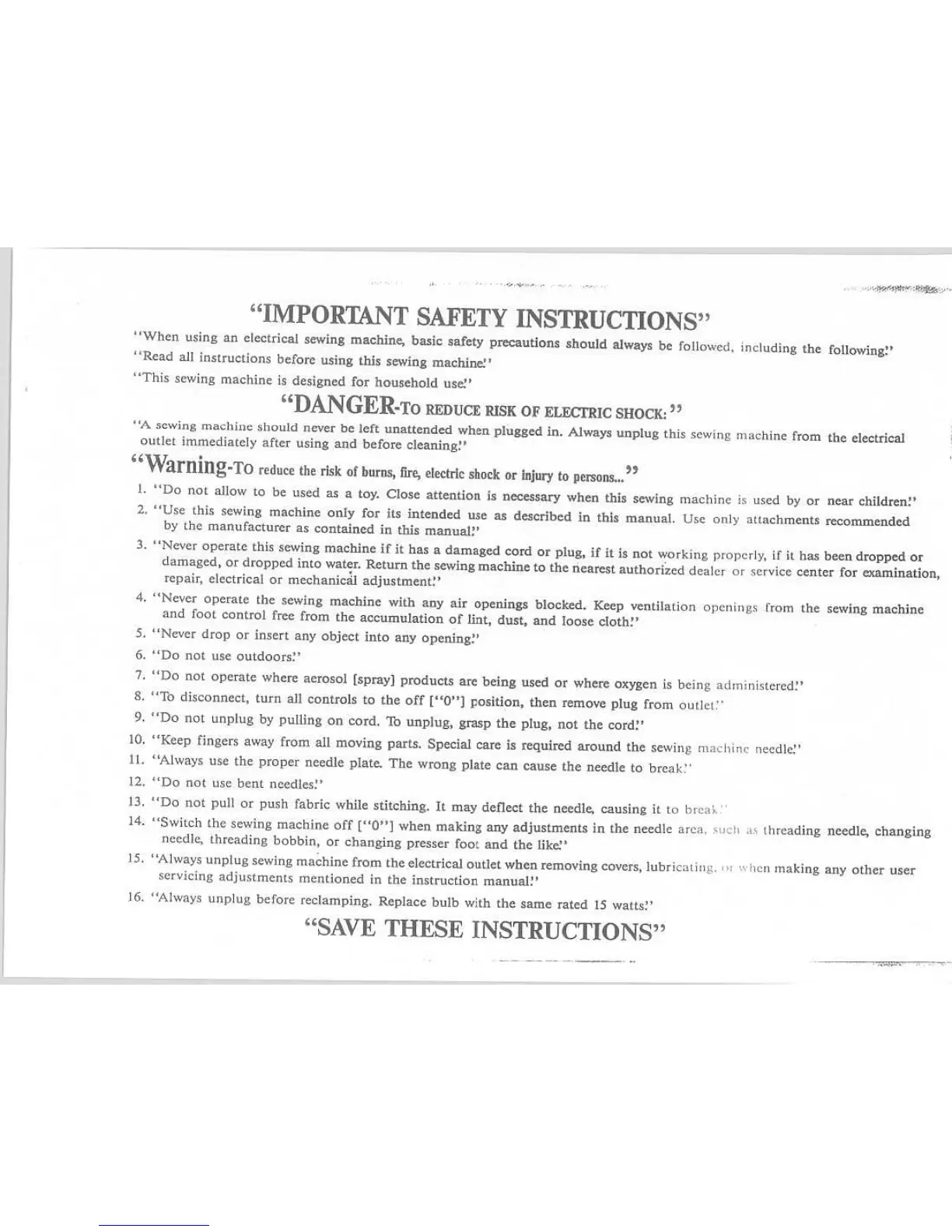 Riccar RM540 - Important Safety Instructions; Risk of Electric Shock; General Safety Warnings