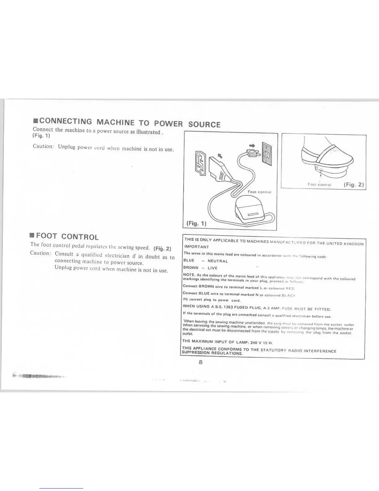Riccar RM540 - Power Connection and Foot Control; Connecting to Power Source