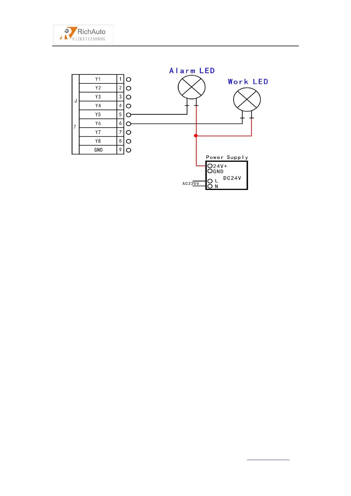 J7 Output port Y5-Alarm LED and Y6-WORK LED:
