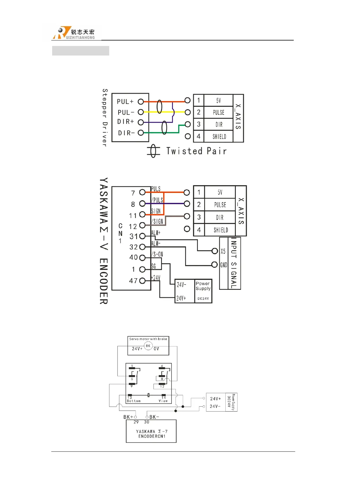 X pulse signal wiring Y and Z are the same as X