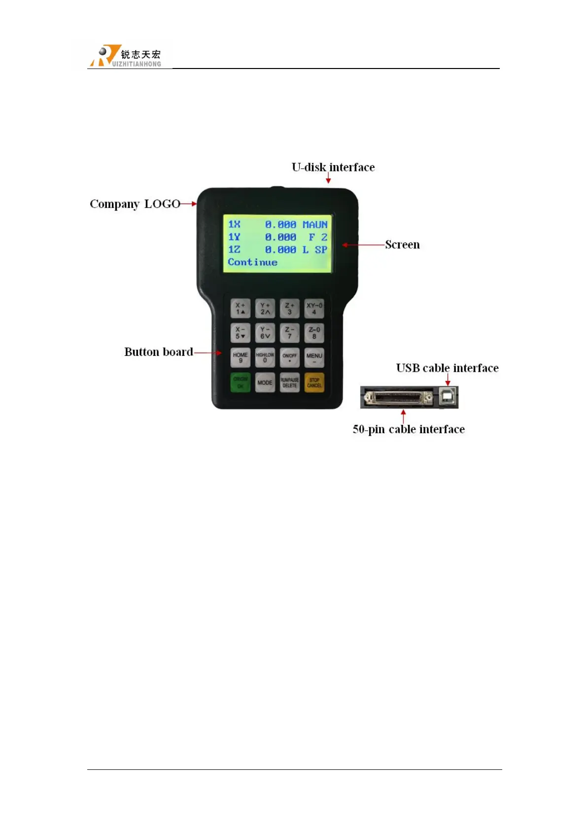 5) 50-pin data cable interface:Connect the handle with the interface board to realize controling
