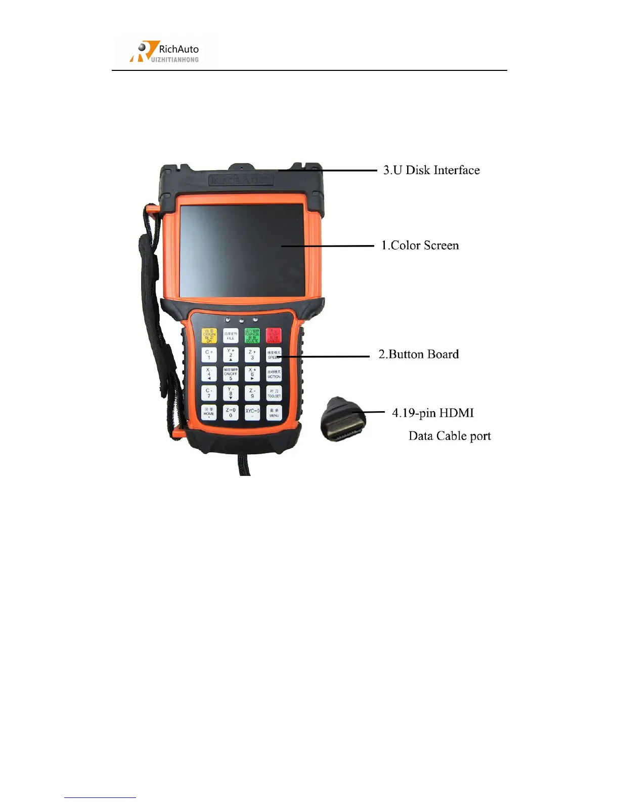 4) 19-pin HDMI Data Cable port: The port of 19-pin data cable,it connect the