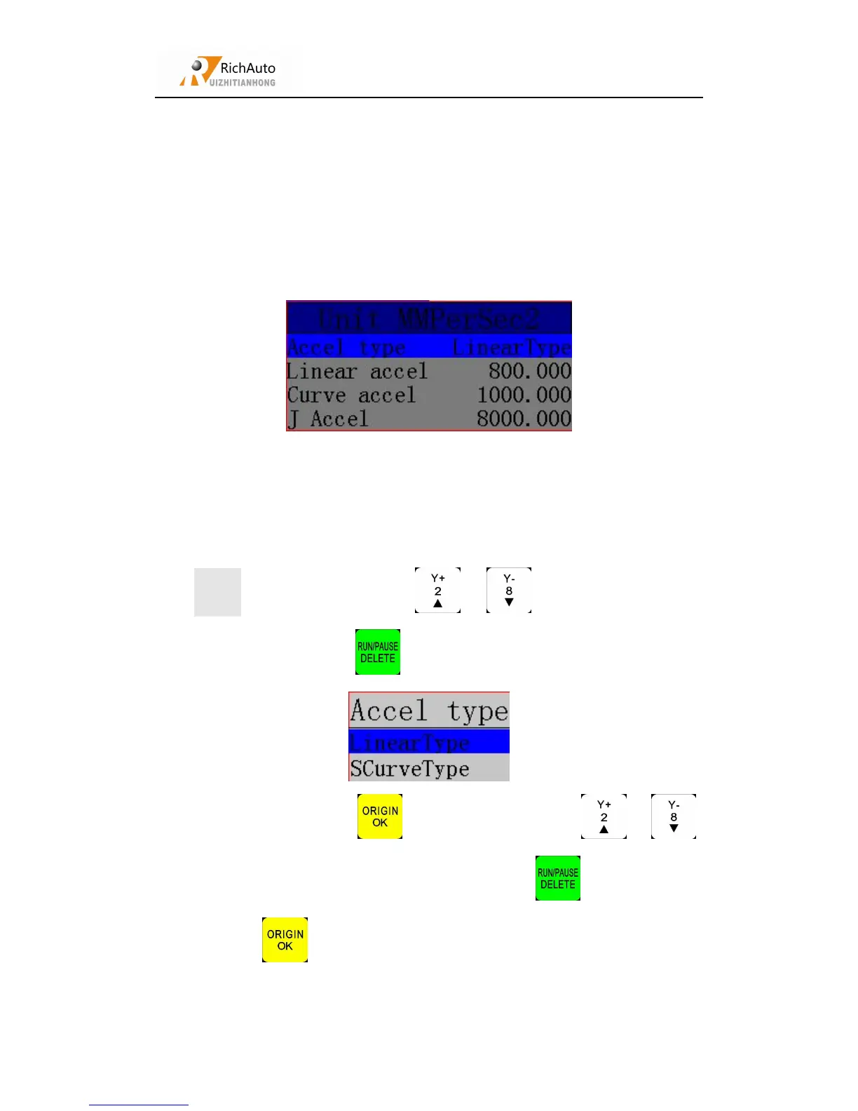 to move cursor to each axis“Accel”and“JAccel”,press “ ” and input the new