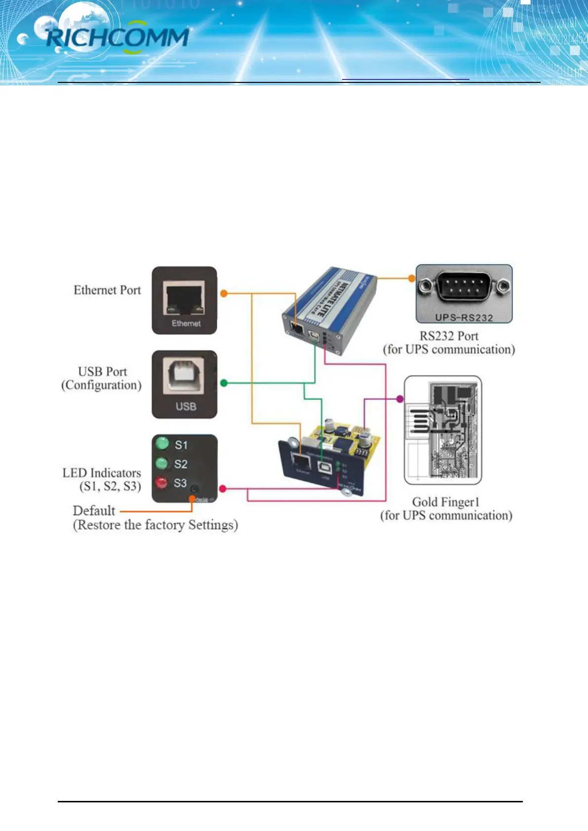 ⑤ S3 (Red): Device status indicator (red), continuous on shows connected well with UPS and