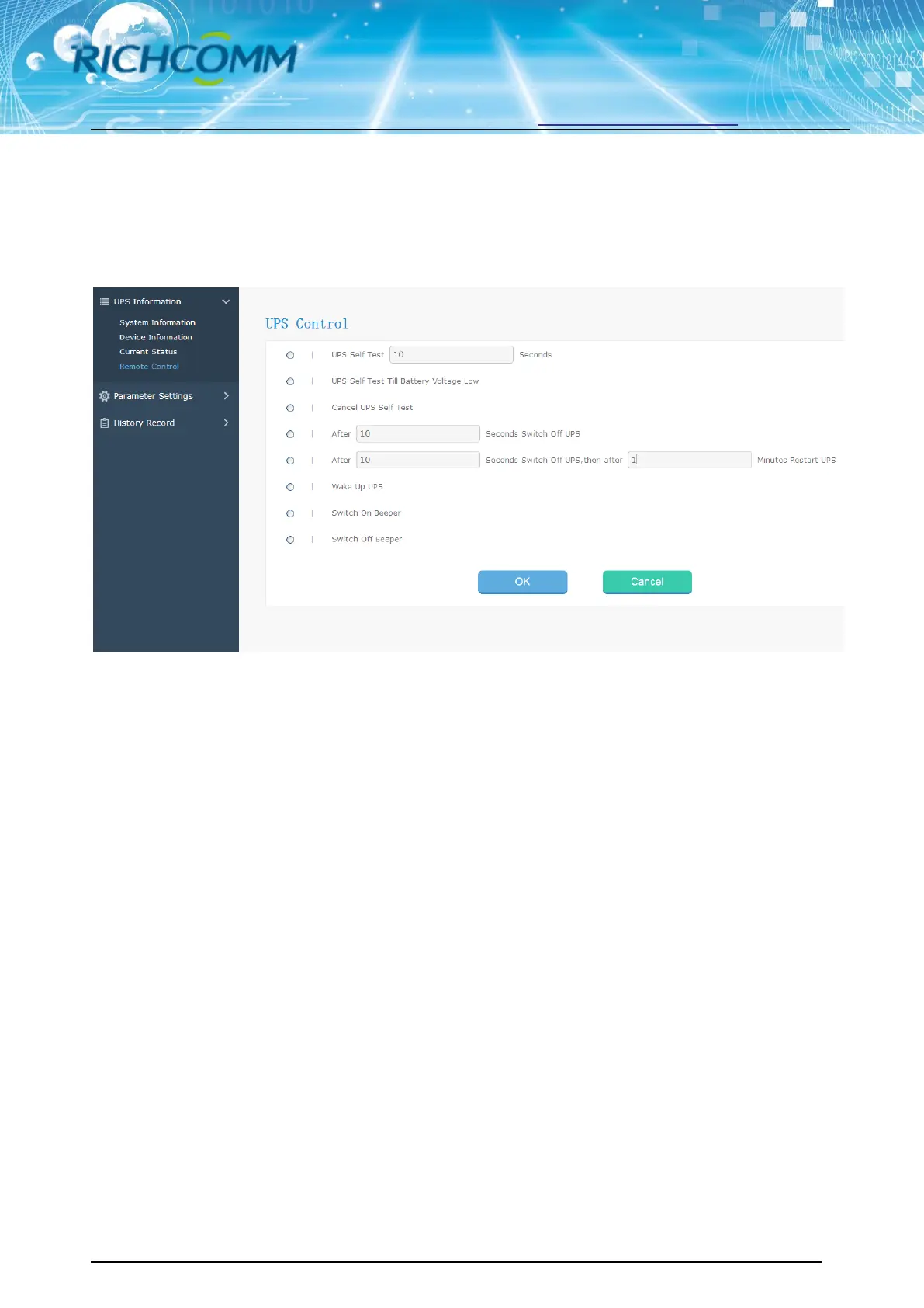 This part is to set UPS basic parameters and the communication protocol is default, Baud Rate/