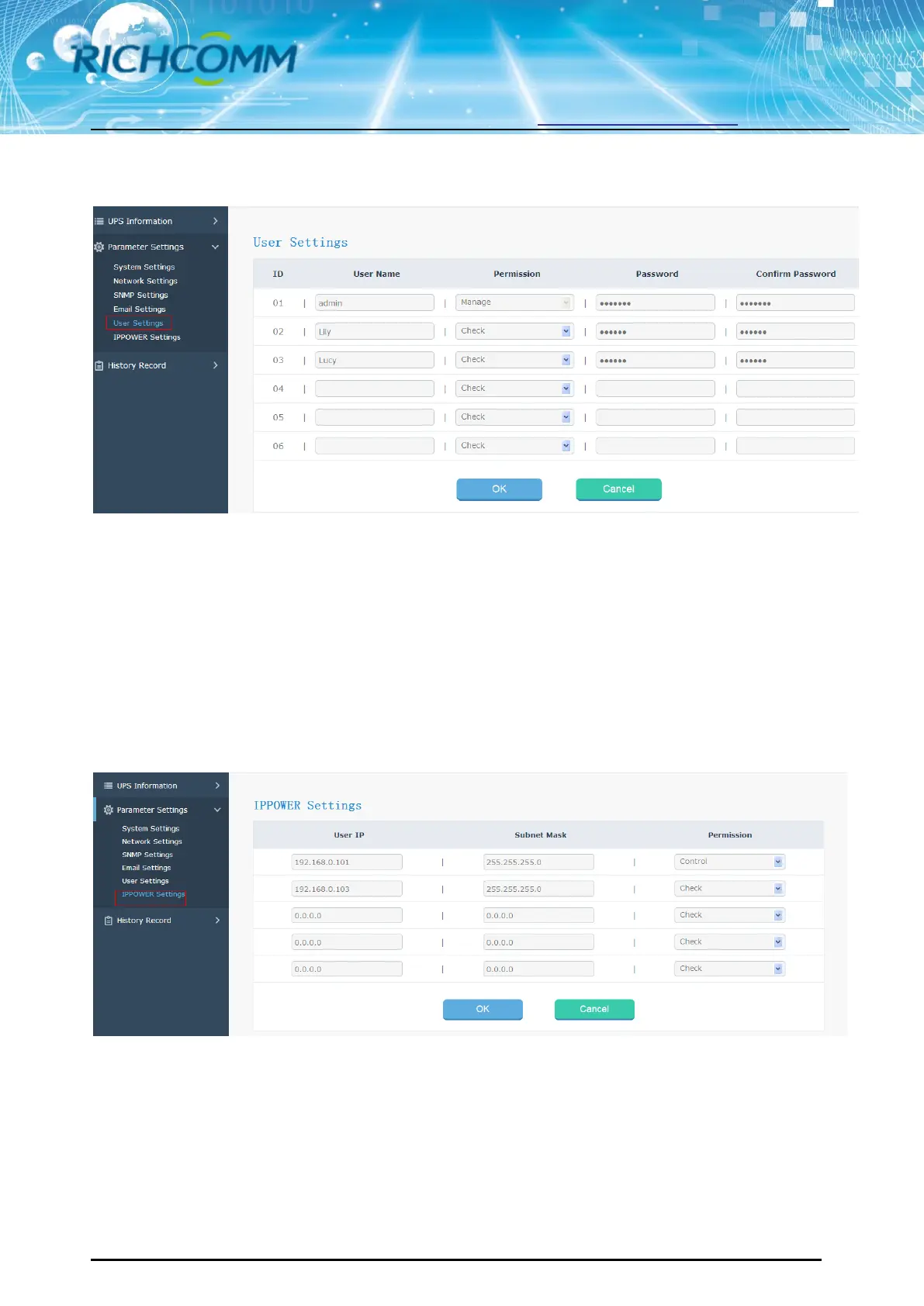 managed via RichComm IP Power software. Authorization item includes Control and Access.