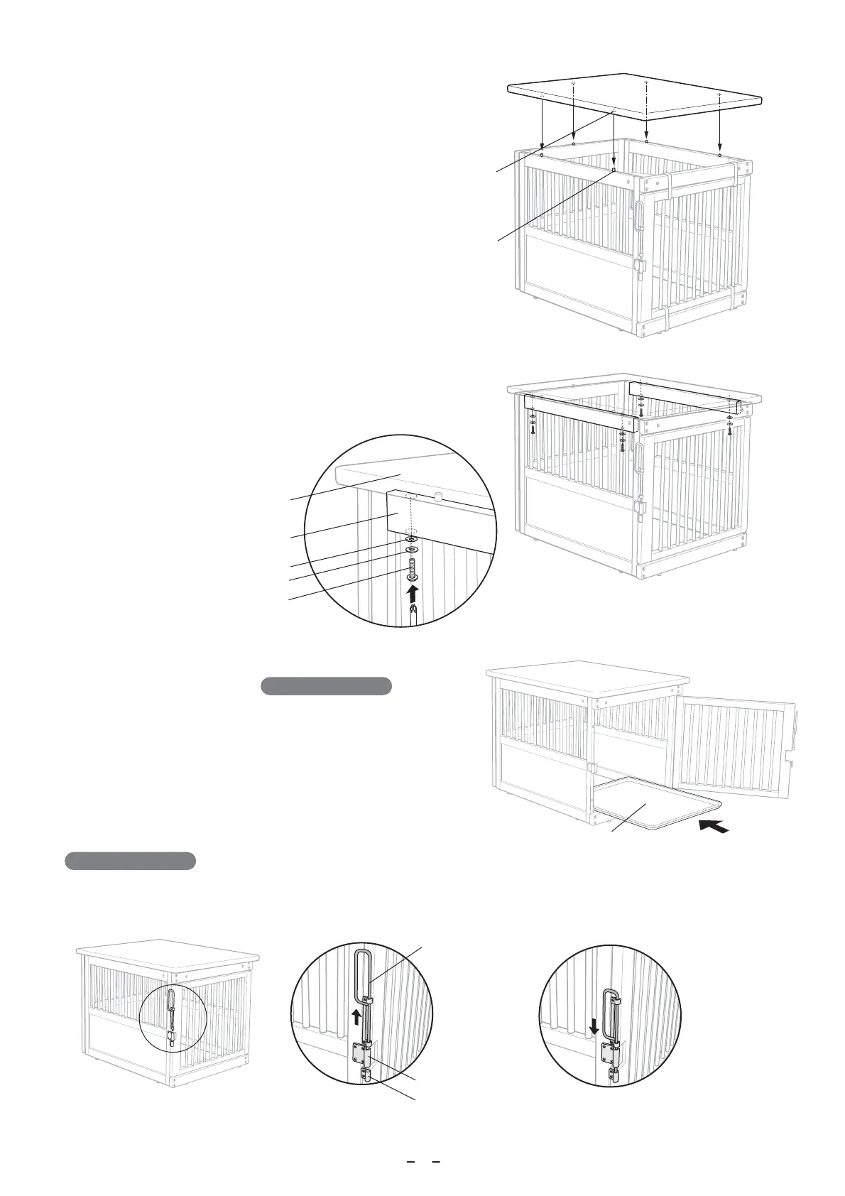左右側面パネル(4カ所)、後面パネル上部のダボ(1カ所)