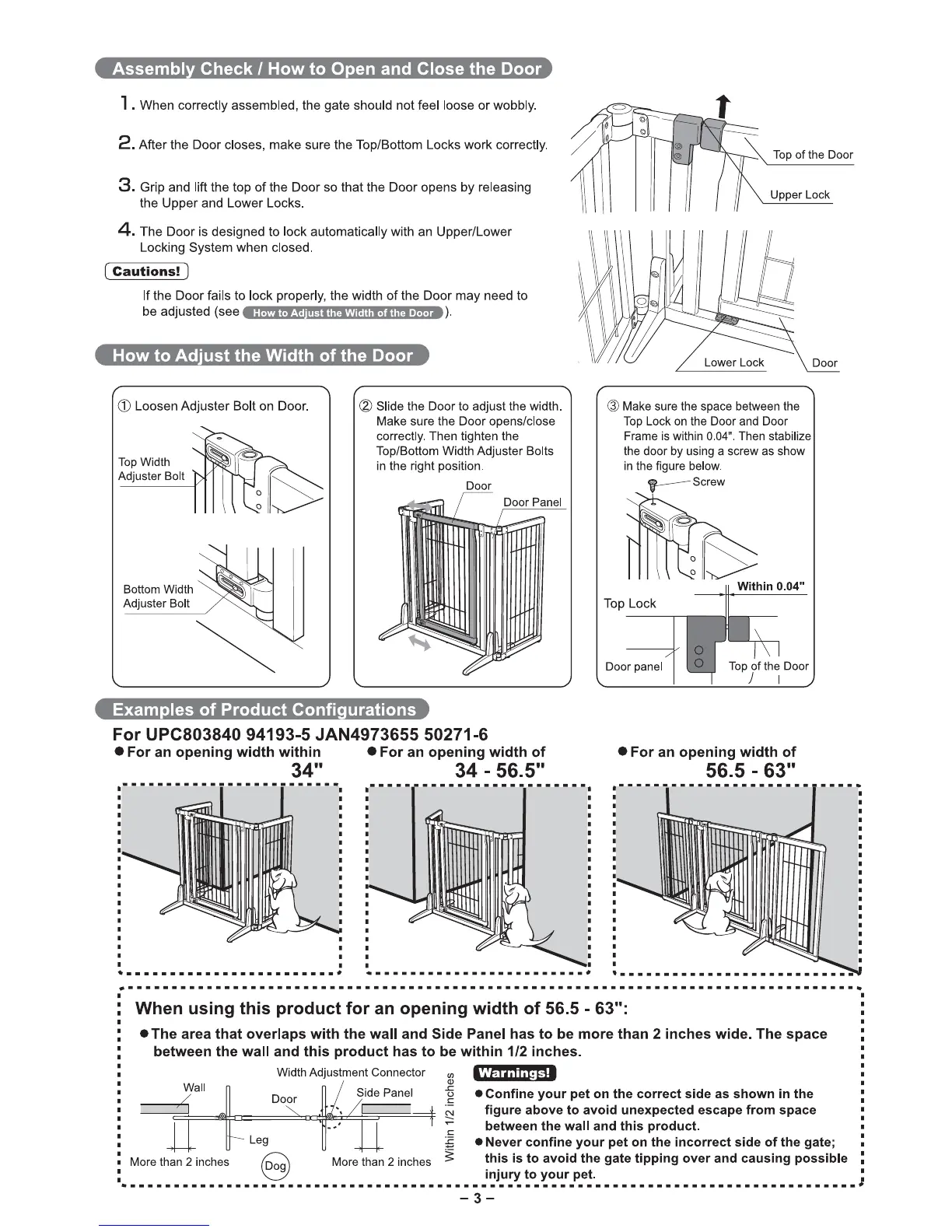 Richell 94193 - Assembly Check and Door Adjustment; Assembly Check and Door Operation; Adjusting Door Width; Product Configuration Examples