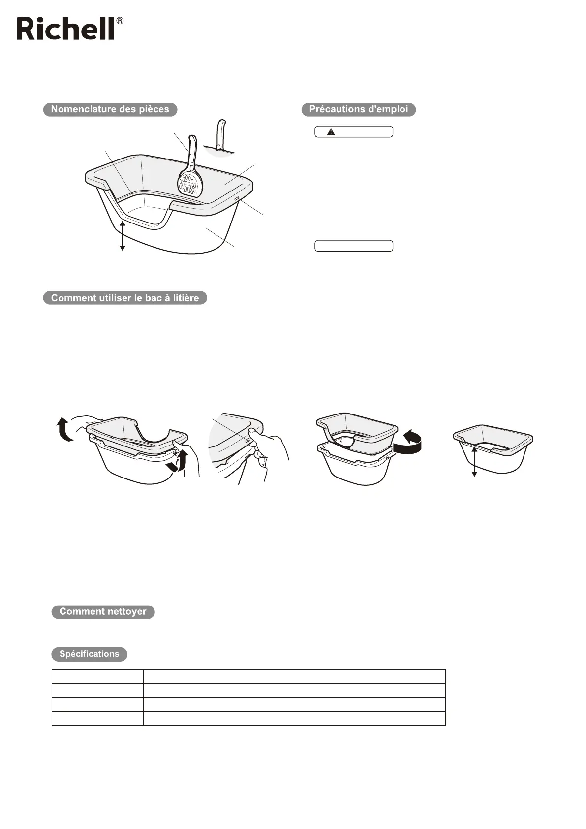 ※Pour l'emploi et la mise au rebut de litière pour chat, veuillez suivre le manuel d'instruction de la litière pour chats.