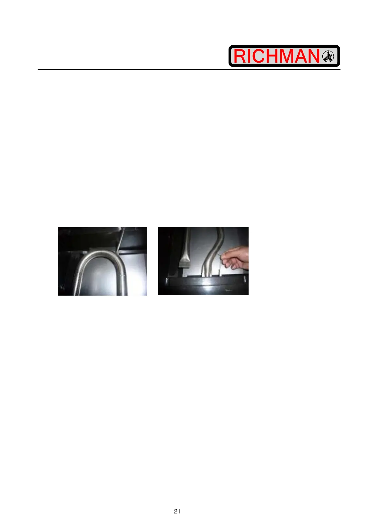 Step 2. Secure the main burner on the back wall of fire box with 2 screws.