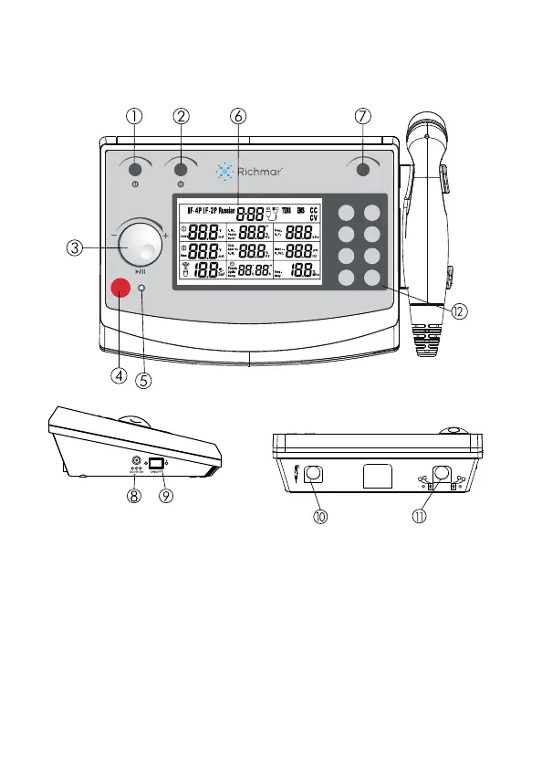 10. Output connector: connect with ultrasound applicator