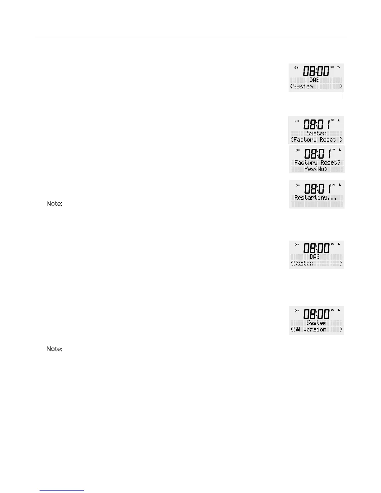 ote: Factory reset will erase all station lists, setting and station presets previously