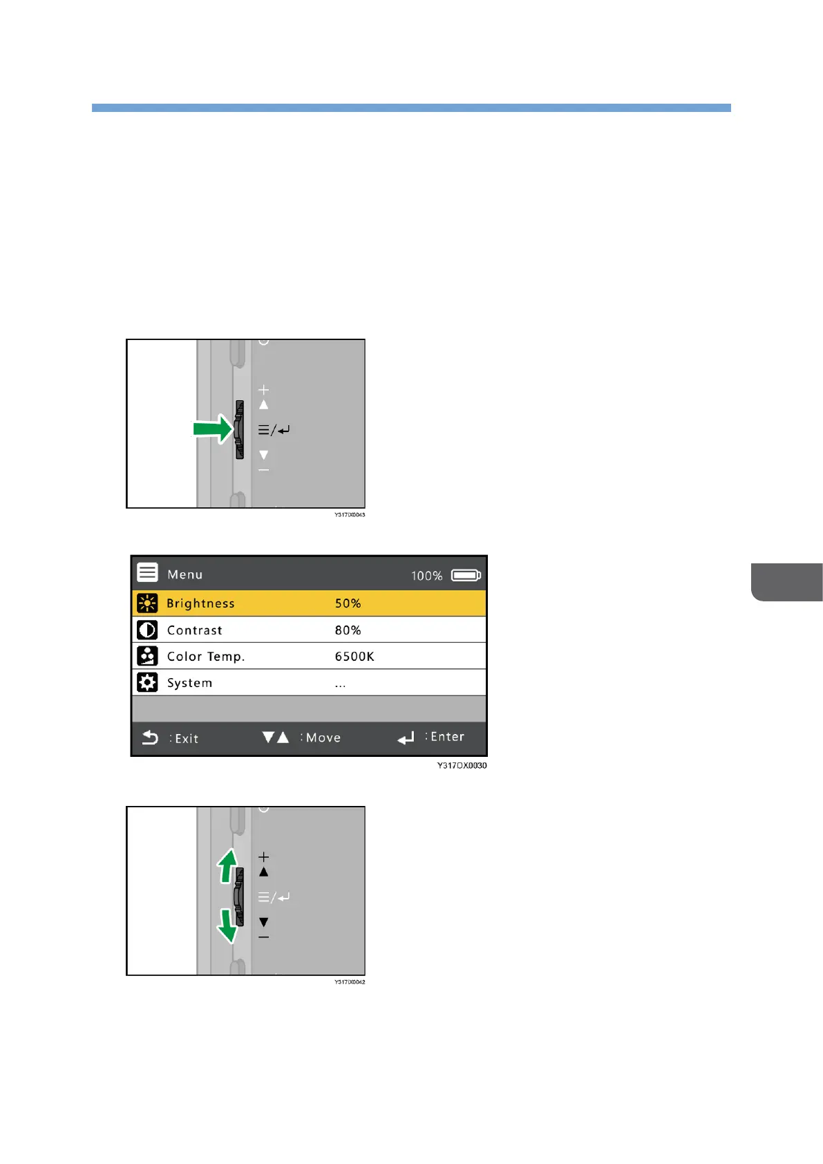You can change the screen brightness, contrast, color temperature, and other settings in