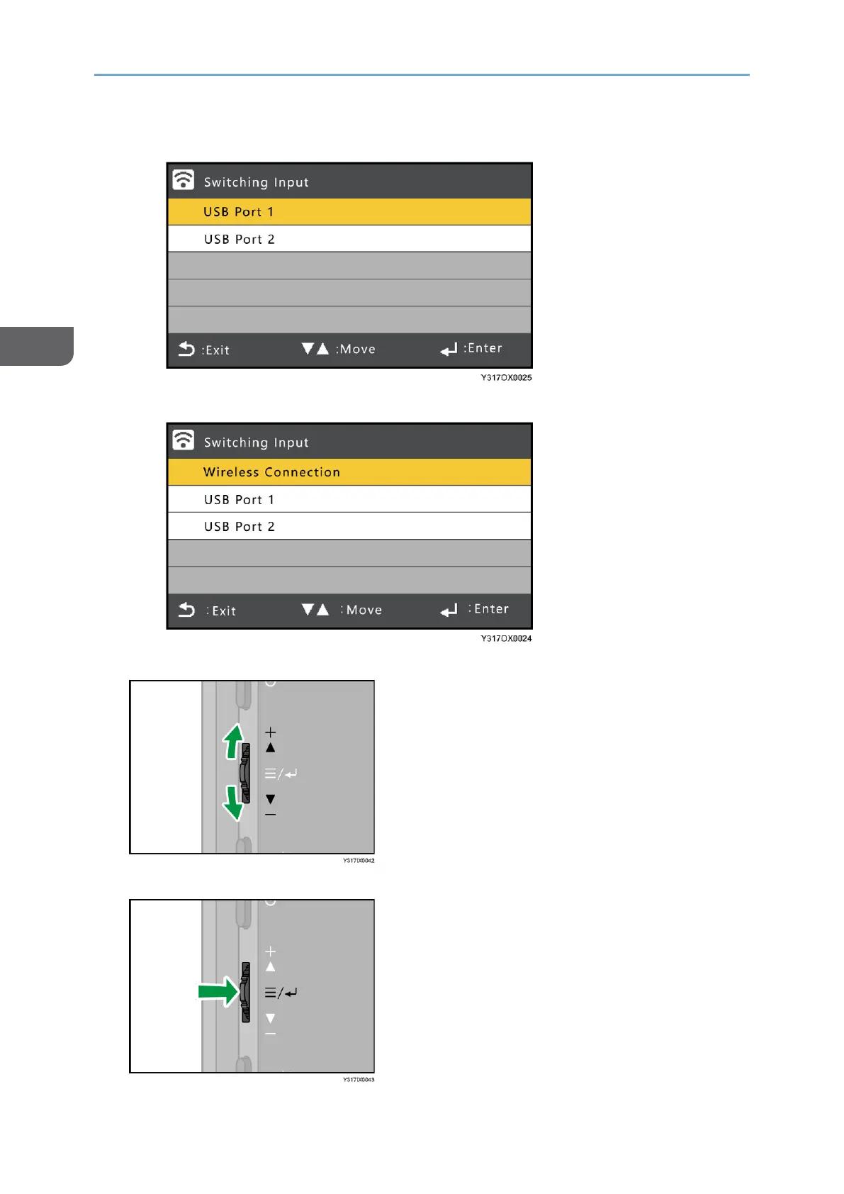 2. Slide the Menu/Select/Enter button up or down to select the input method.