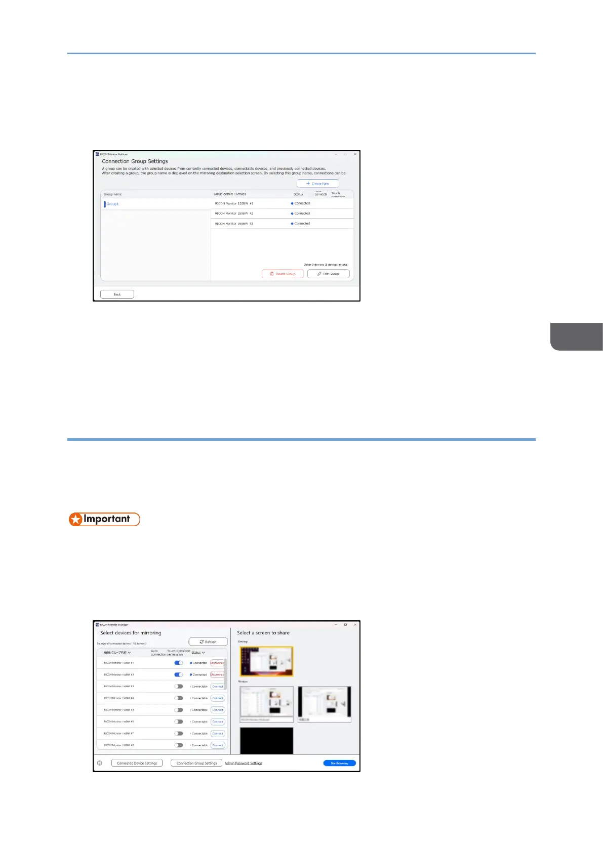 "Select Devices for Mirroring" screen.