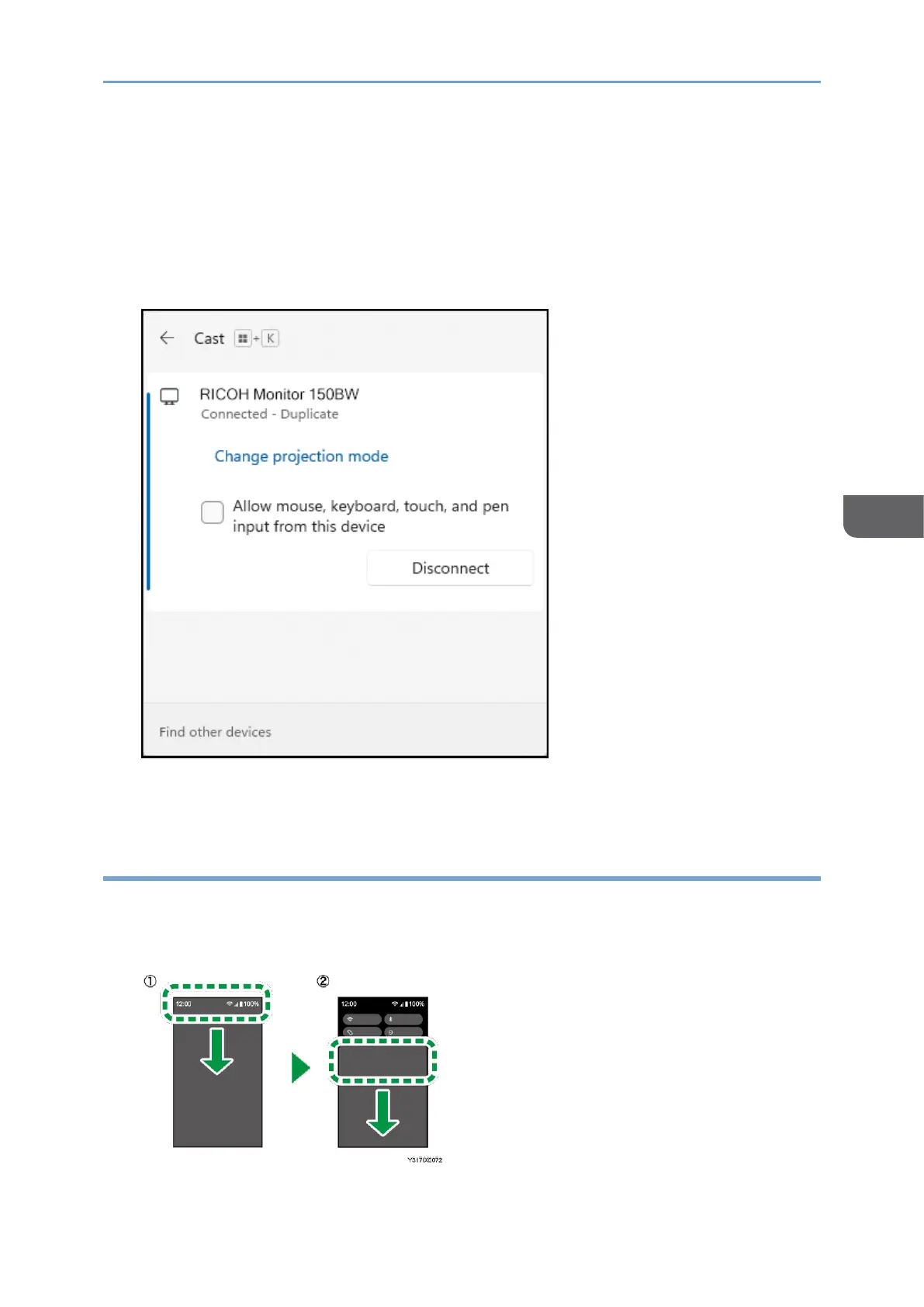 1. Swipe down from the top of the Android screen (1), and then swipe down the