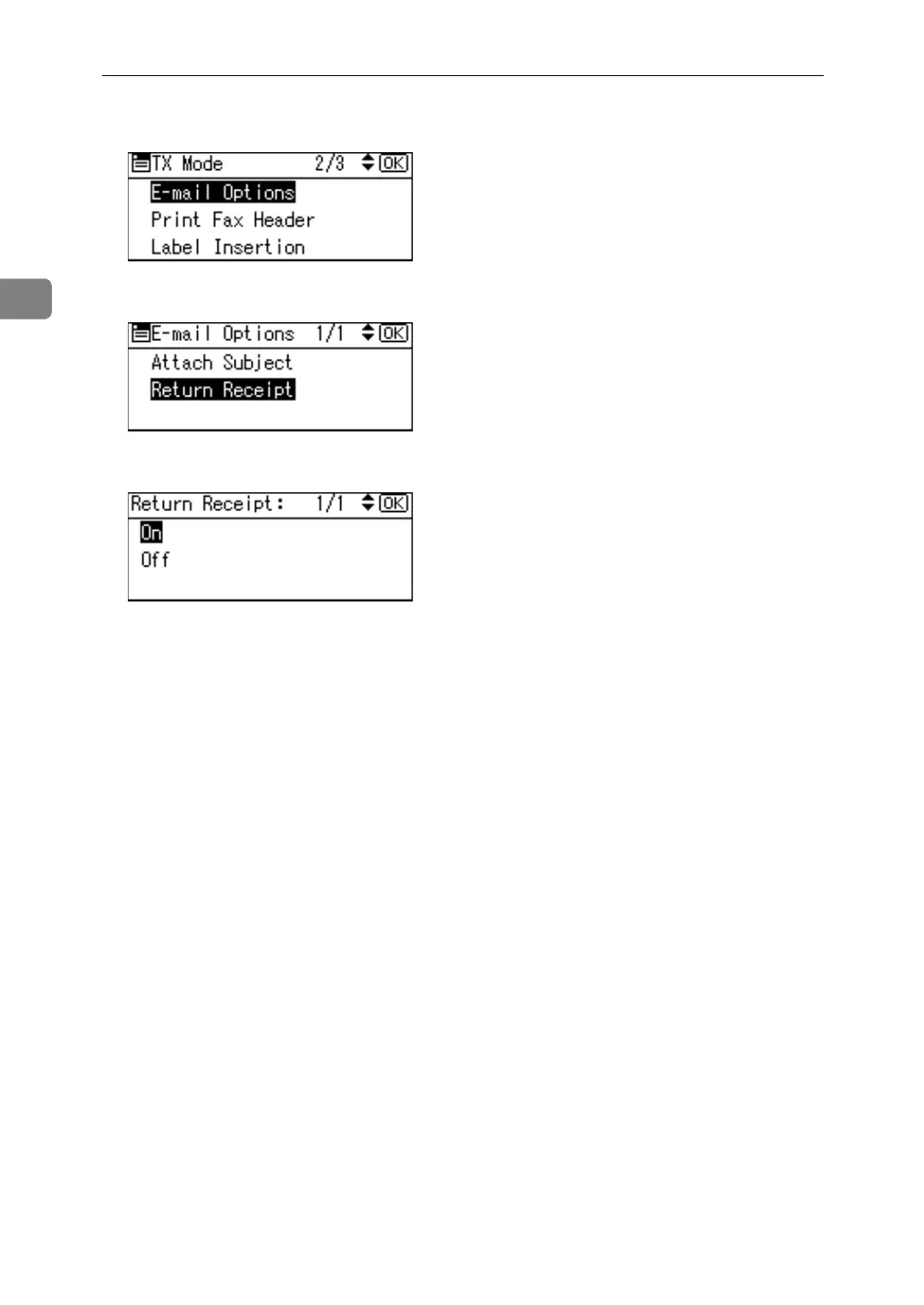 D Select [Return Receipt] using {U} or {T}, and then press the {OK} key.