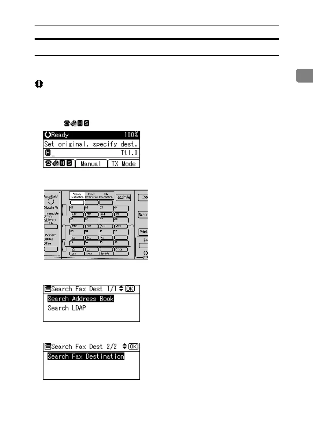 D Select [Search Fax Destination] using {U} or {T}, and then press the {OK} key.