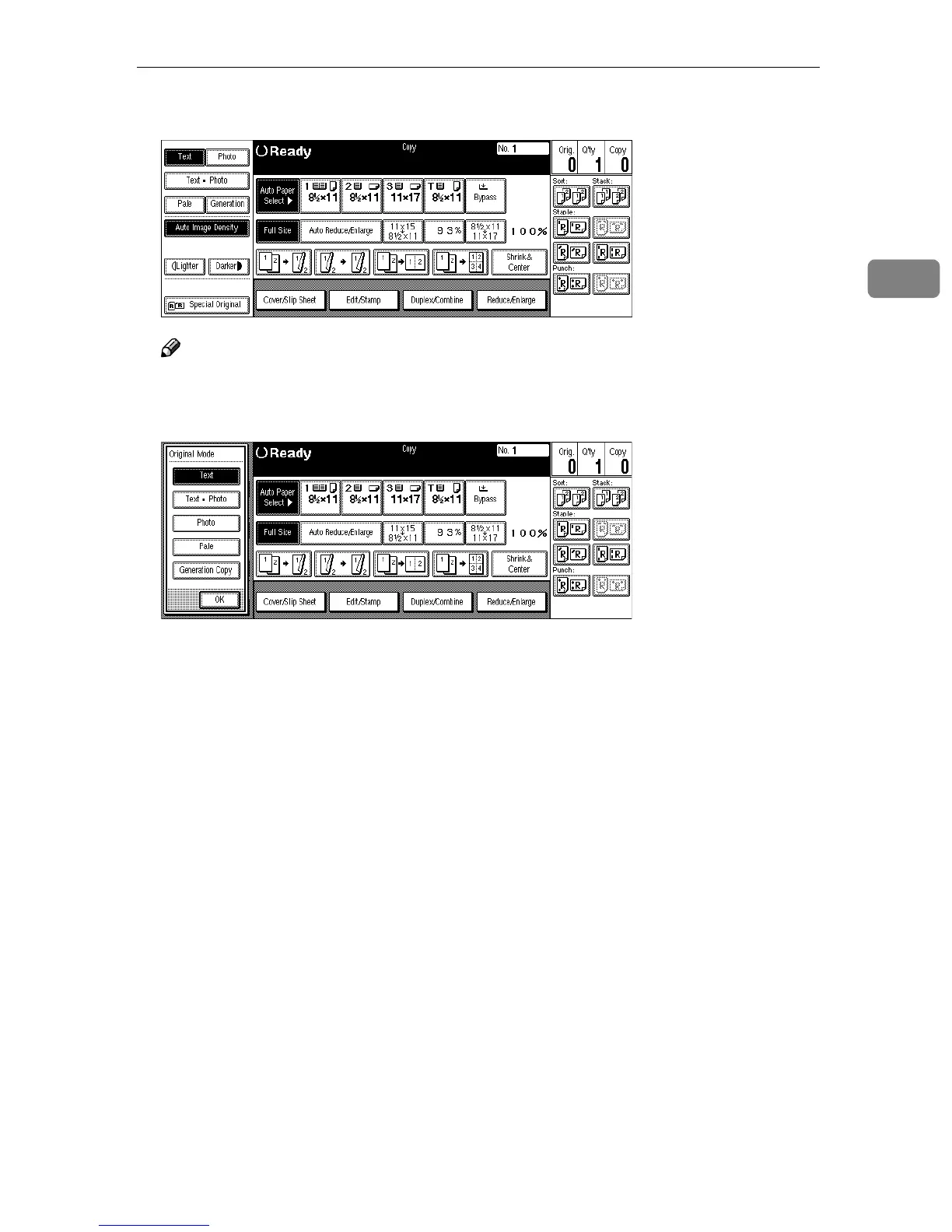 ❒ If “Yes” has been selected in “Original Mode Display” of the User Tools,