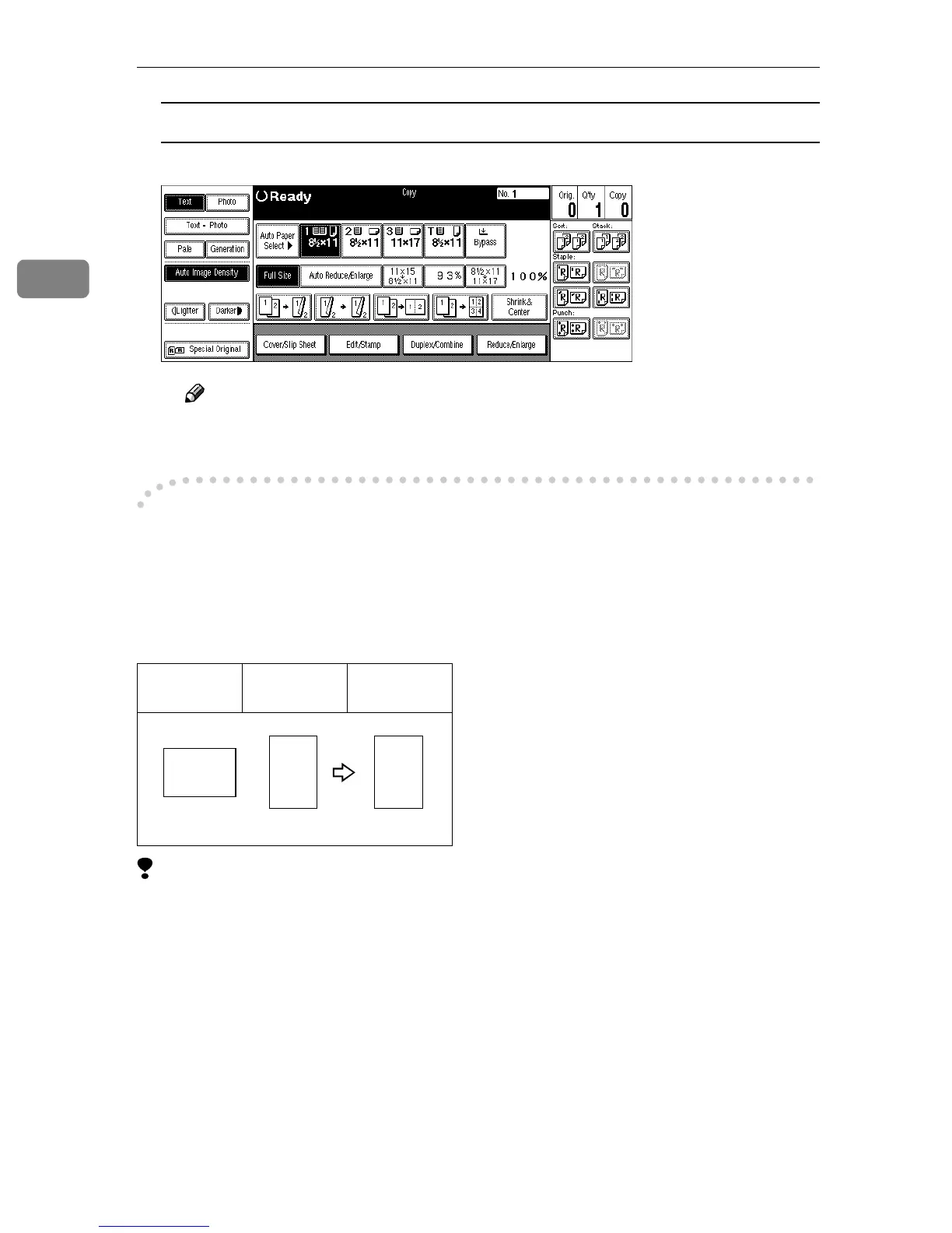 “Selecting Copy Paper” and ⇒ p.49 “Auto Reduce/Enlarge”.