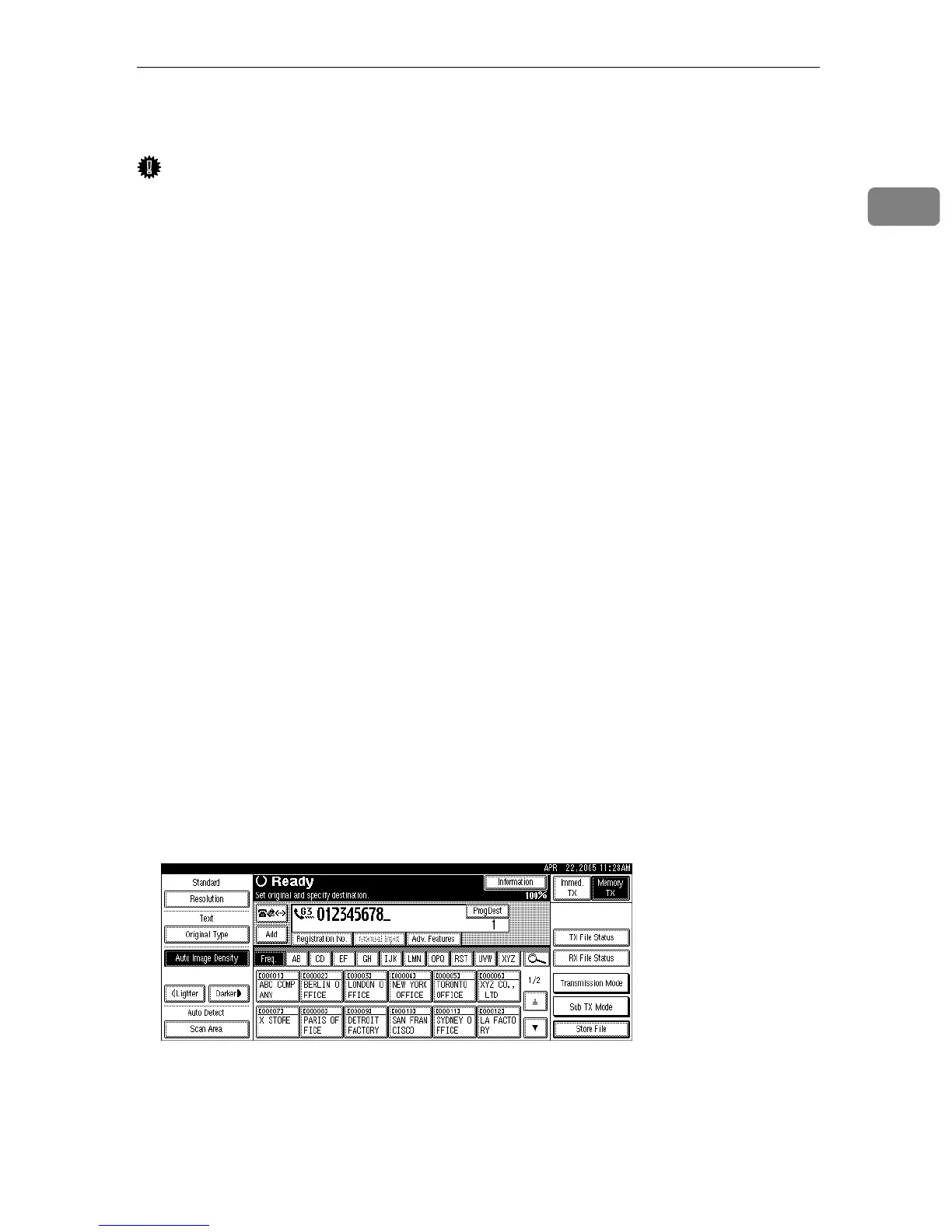 • Program “G3 Fax No. (Dir.)” in this machine (Requesting Party) and in the