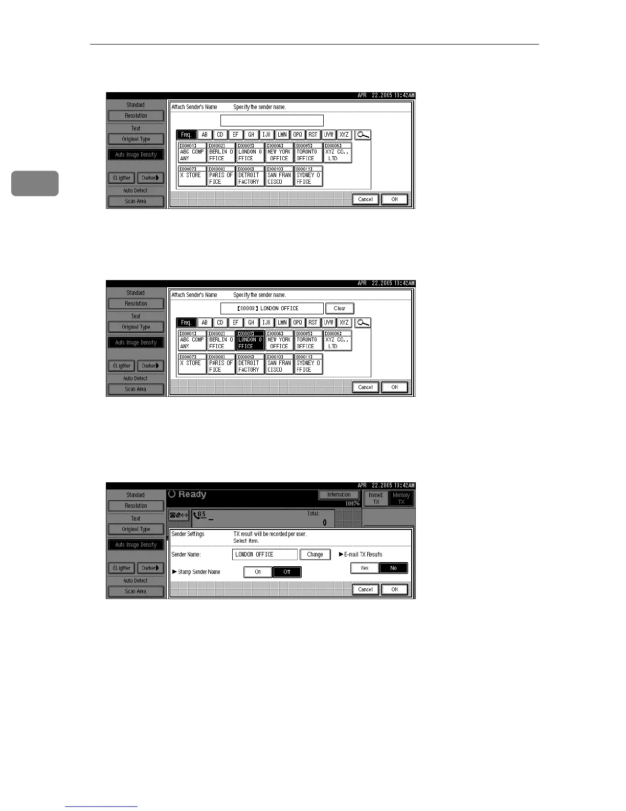 E Confirm the selected sender, and then press [OK].