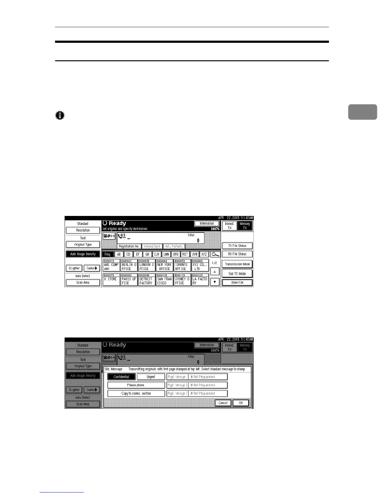 ❒ Program a standard message in “Program / Change / Delete Standard Mes-