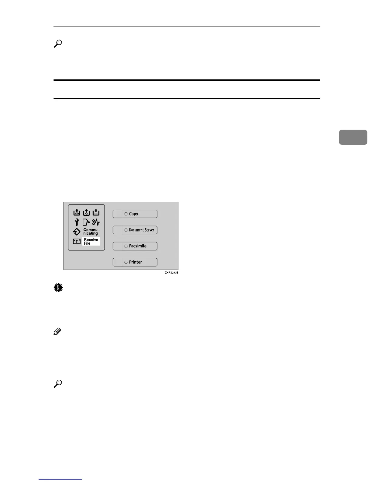 ting in the Facsimile Features menu, the Receive File indicator lights.
