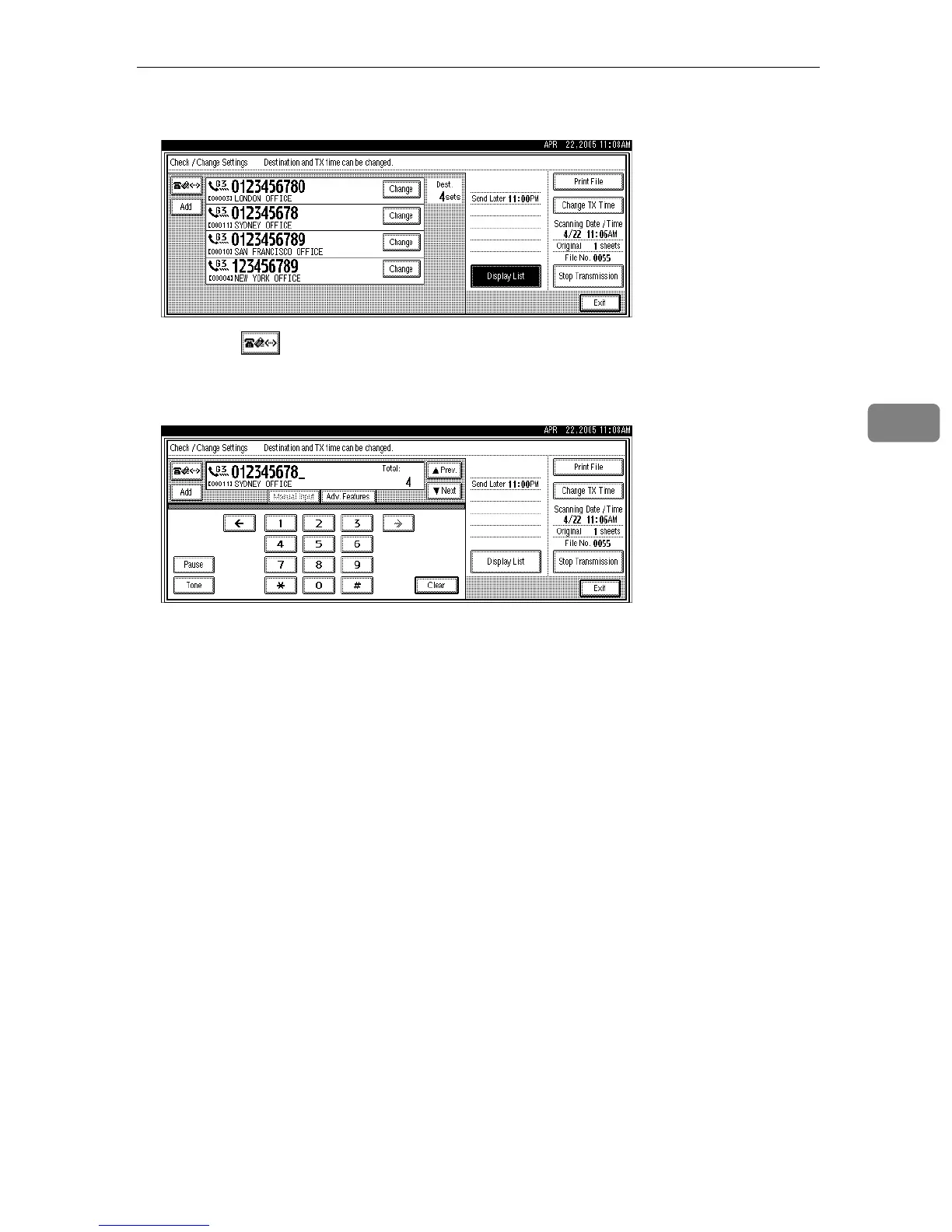 Pressing [Clear] deletes by single digits the fax number or IP-Fax address. The