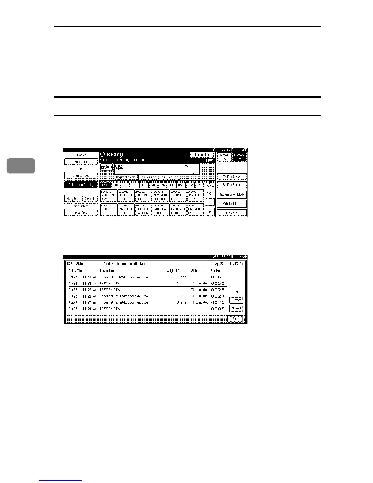 and name programmed in the destination list appears. For a transmission