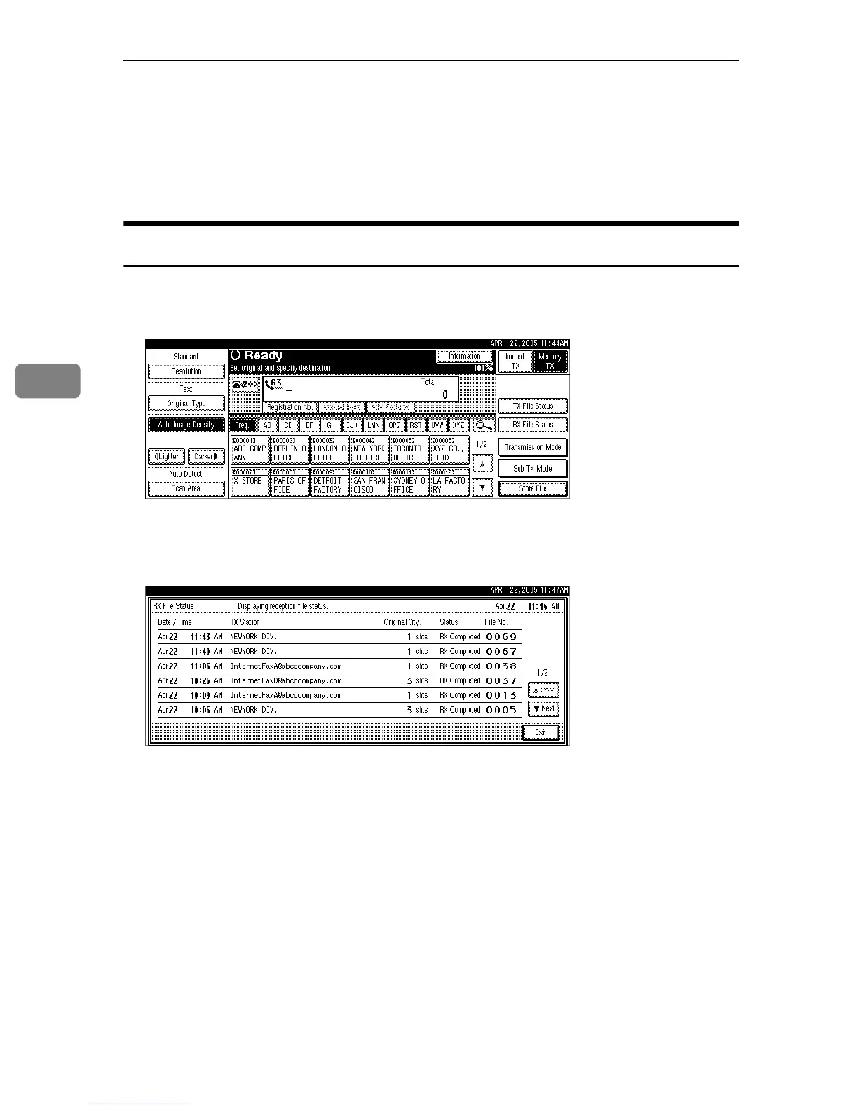 When a fax or IP-Fax is received, “TX Station” shows the Own Fax Number