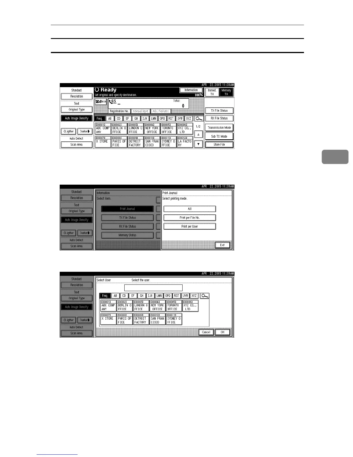 Press [Cancel] if a wrong user name is selected. The display returns to that of step