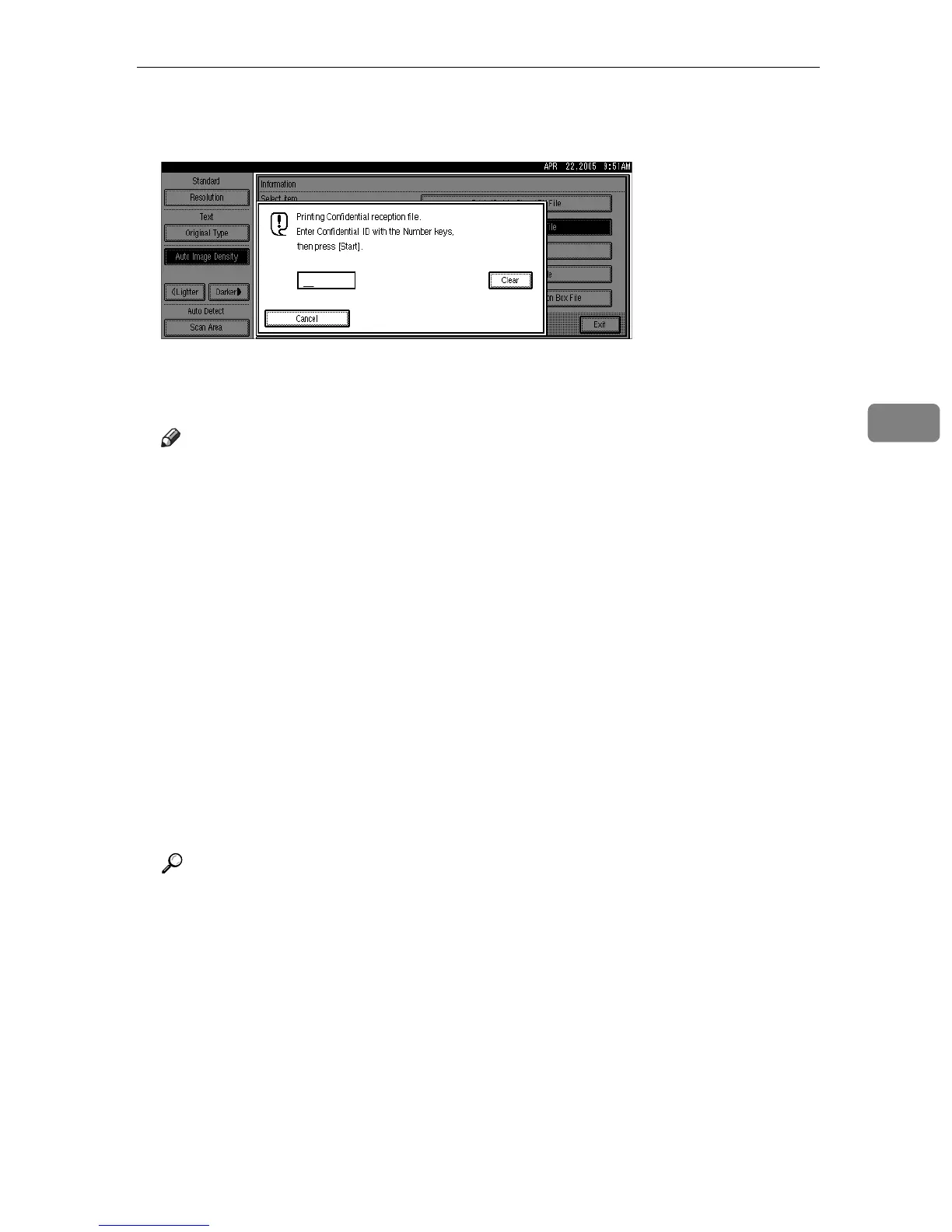 ❒ You must enter the Confidential ID programmed in this machine, if the re-
