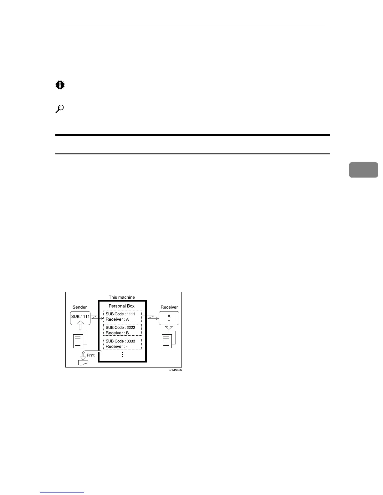 For details about the SUB Code, see “Box Settings” in “Facsimile Features”, Gen-