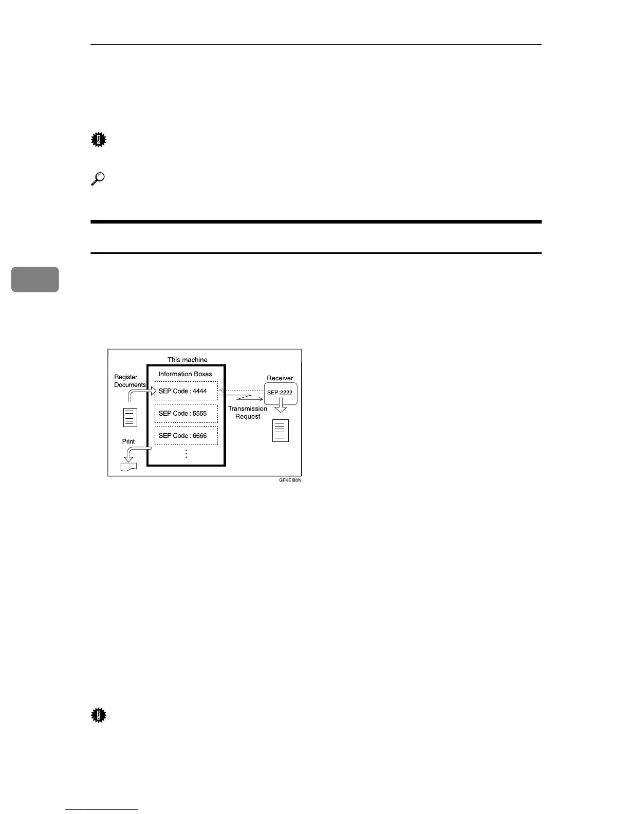 For details about the SEP Code, see “Box Settings” in “Facsimile Features”, Gen-