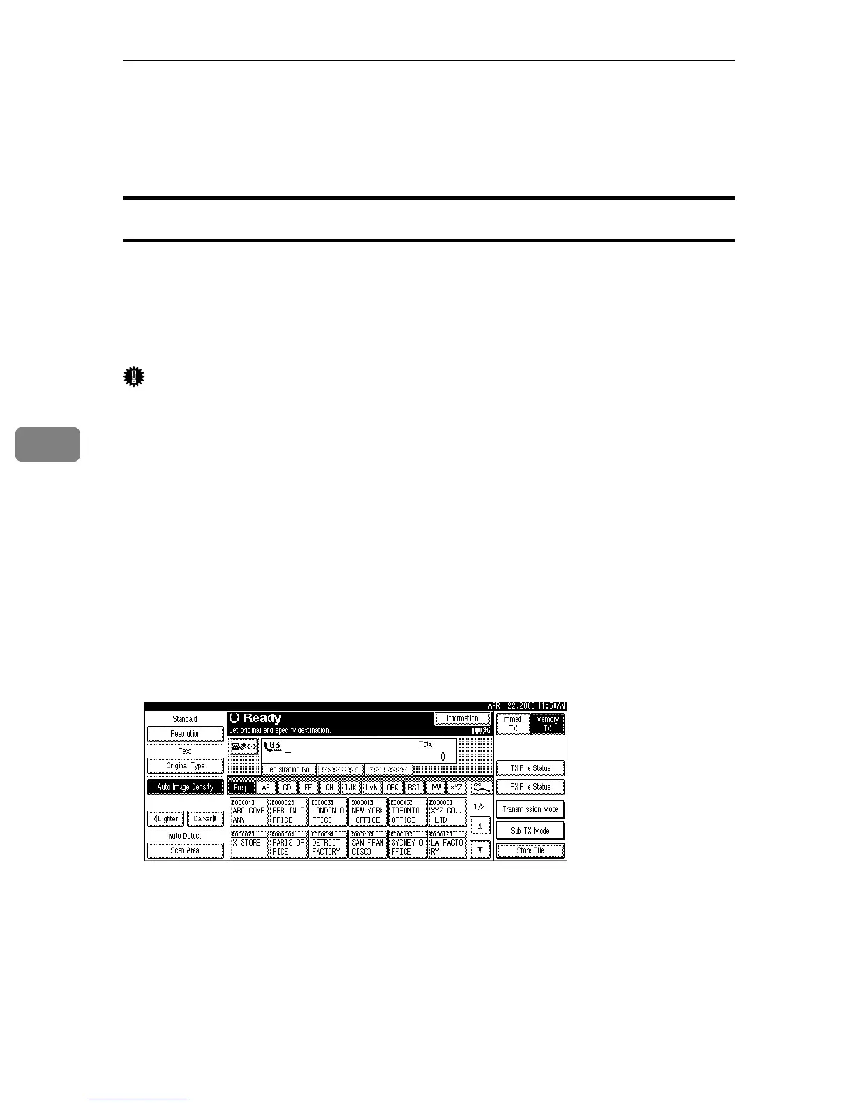 ❒ Store the documents to be sent in advance. You can program a password for