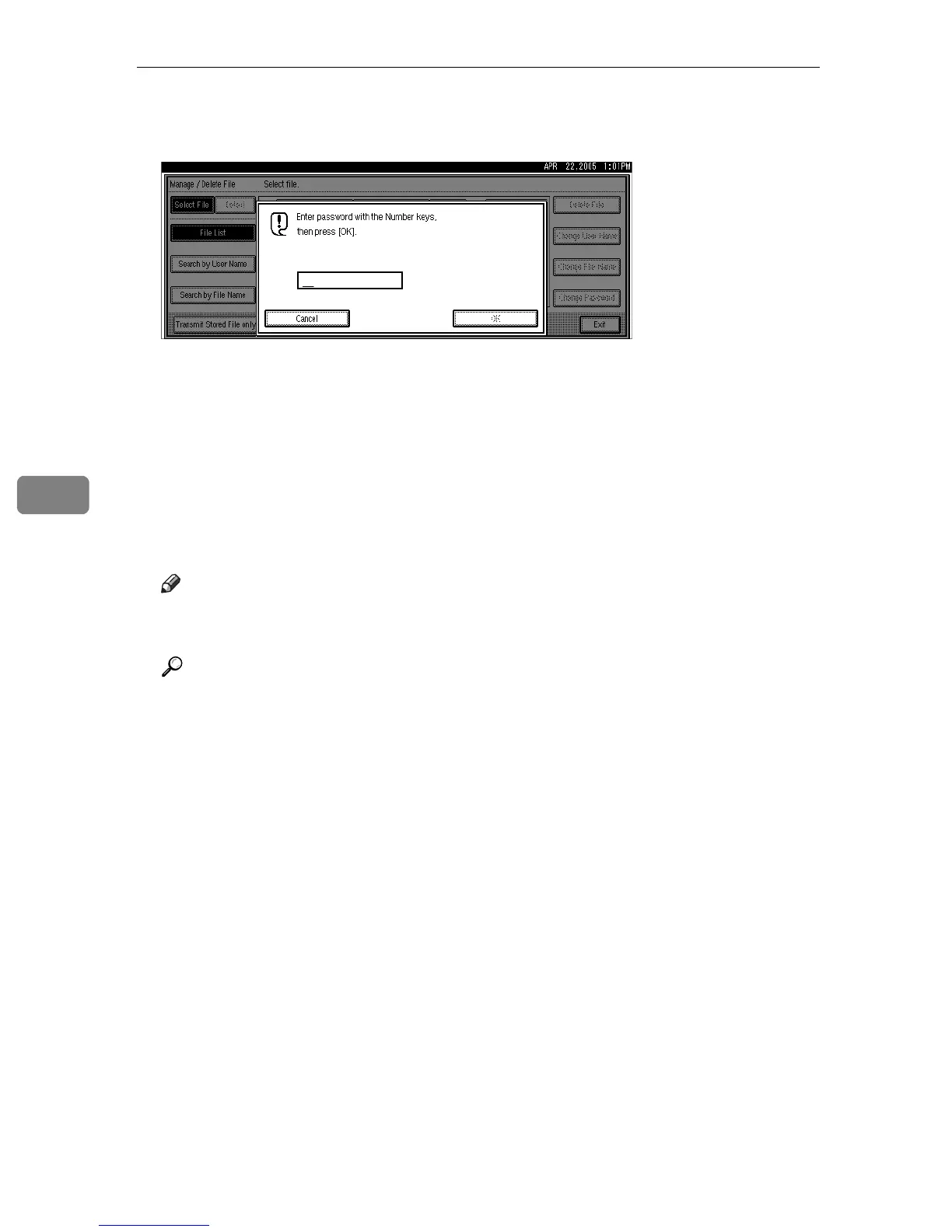 E If you select a document for which a password is set, enter a password us-