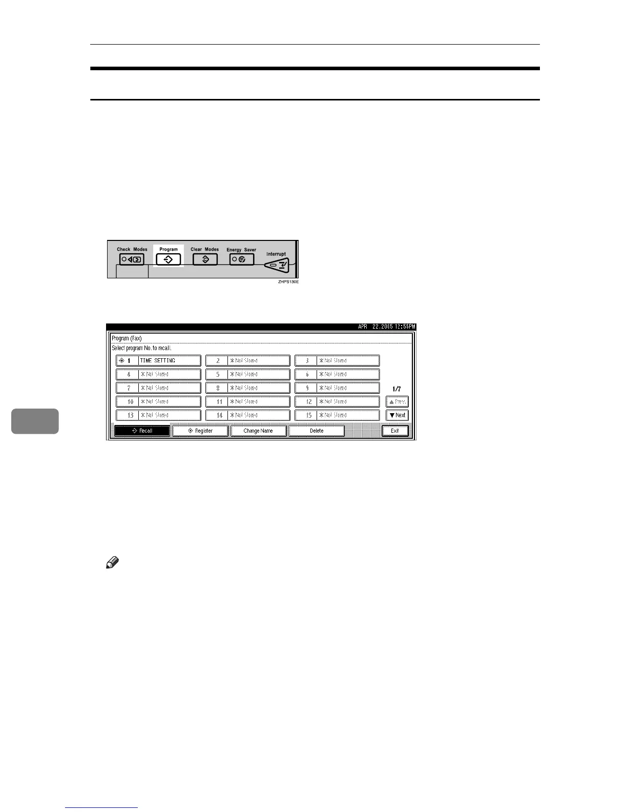 D Confirm that [Recall] is selected, and press the registered program number.