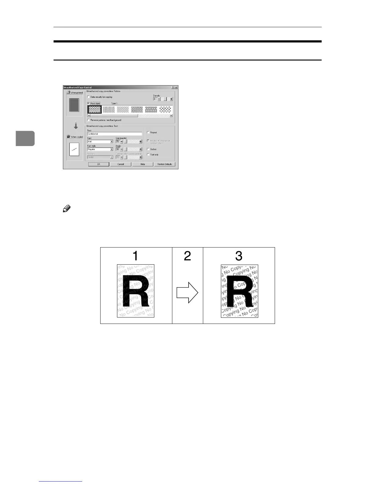 You can embed patterns and text in a document by setting in the printer driver
