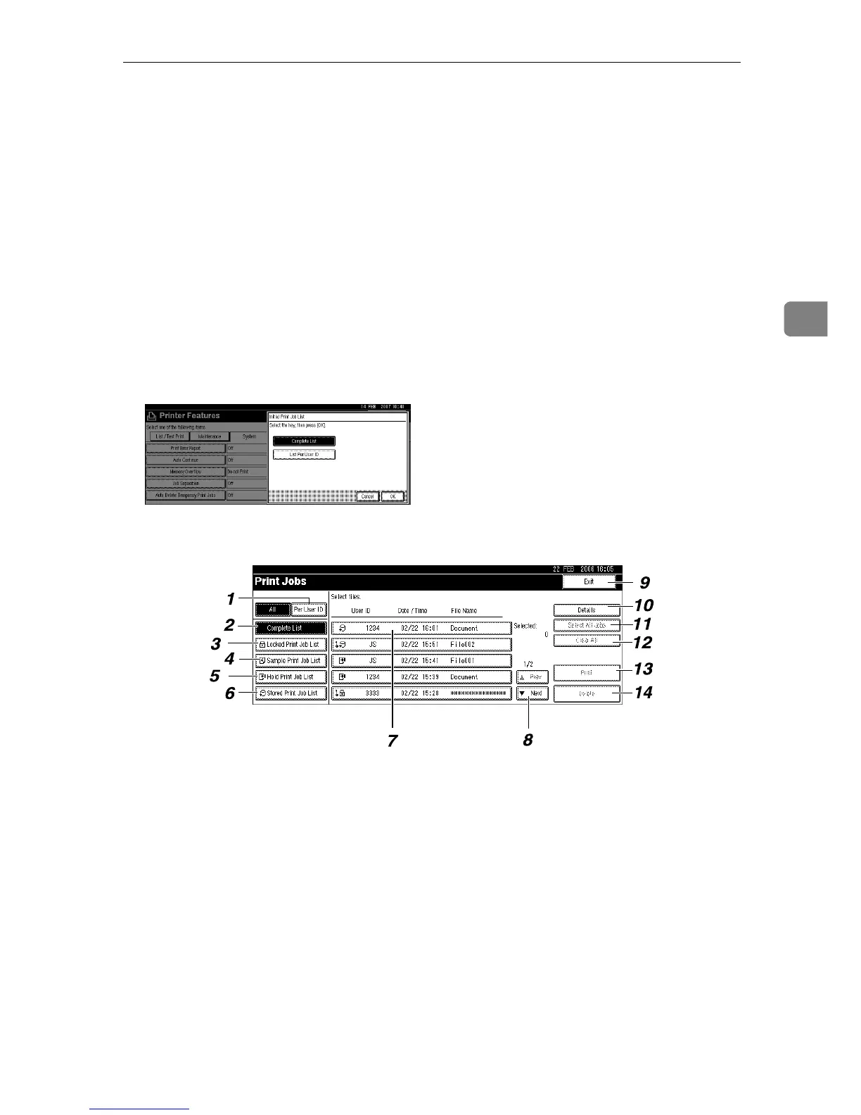 If you press [Print Jobs] on the Printer screen, the Complete List or the List Per