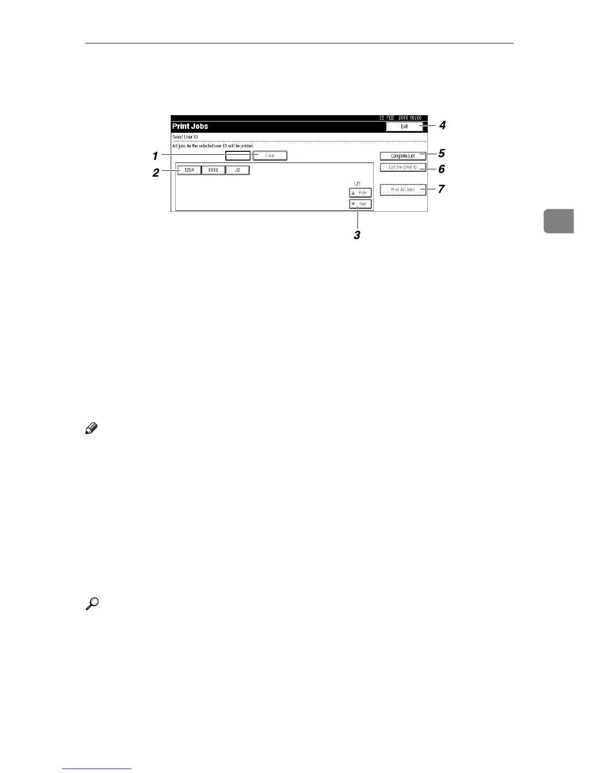 If you select [List Per User ID] from [Initial Print Job List], the following screen ap-